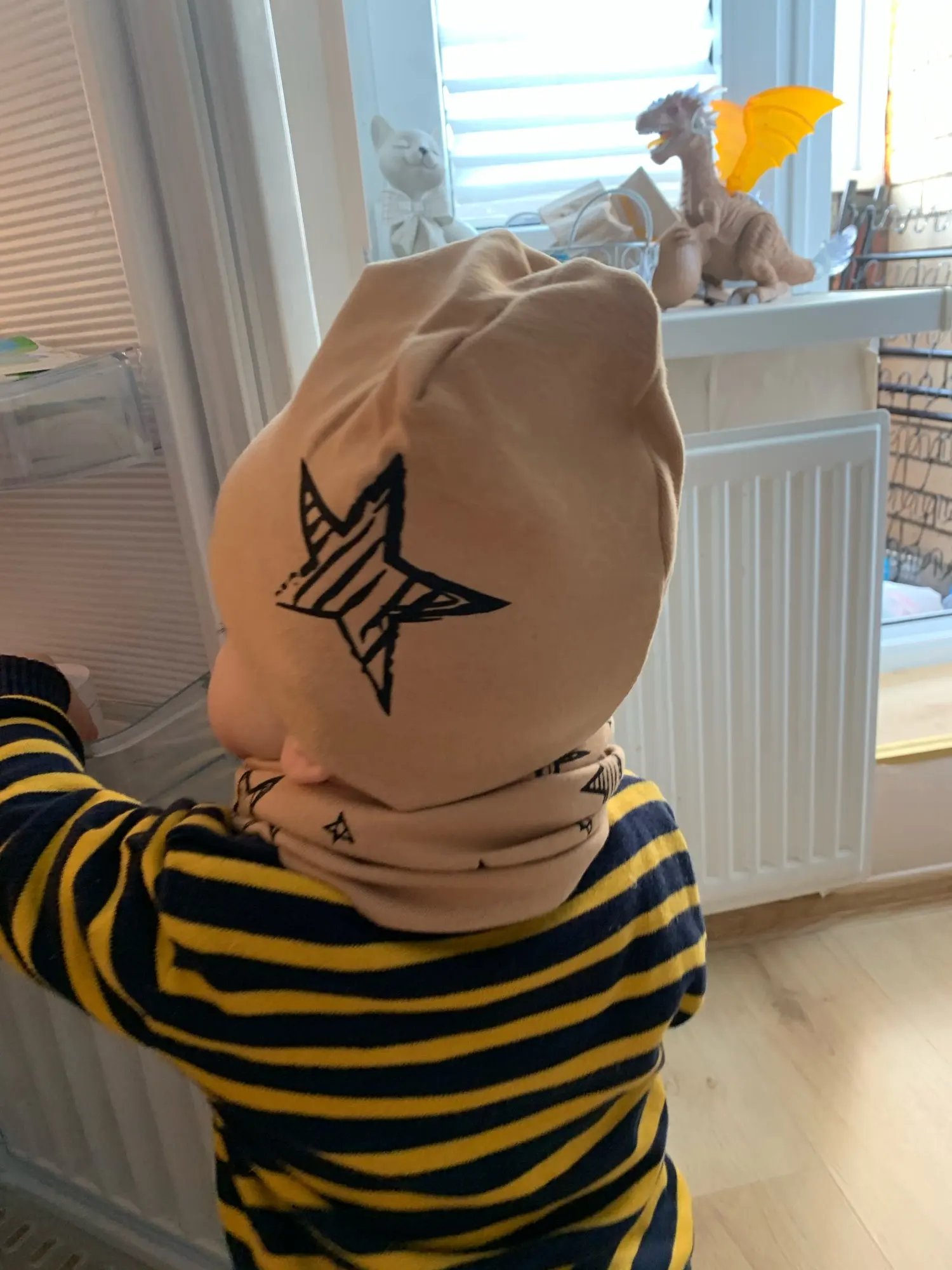 Прикольная шапка и снуд на ребёнка,нам почти 3—нам как раз,внутри что то типа флиса...на осень как раз