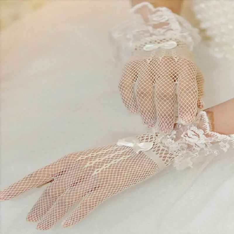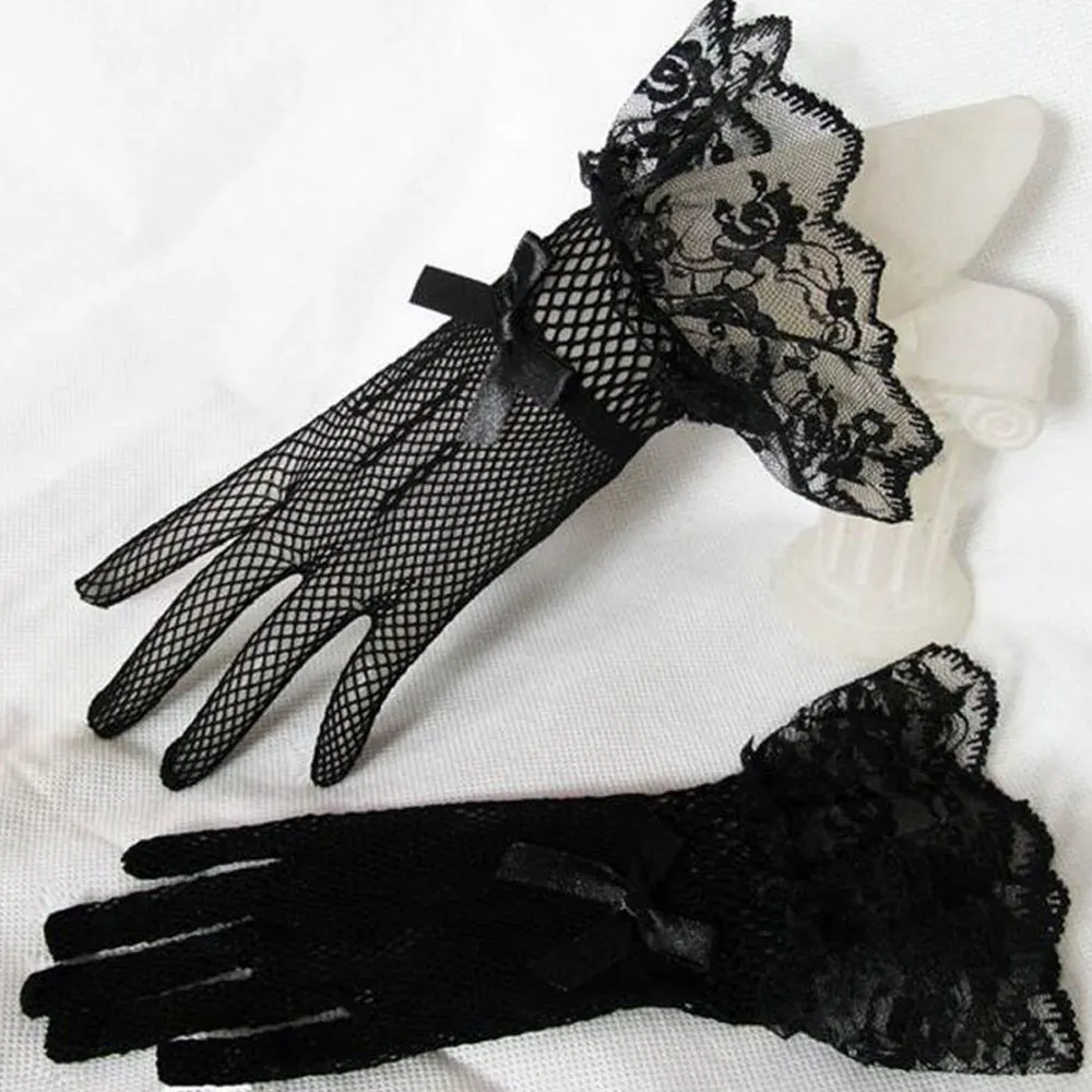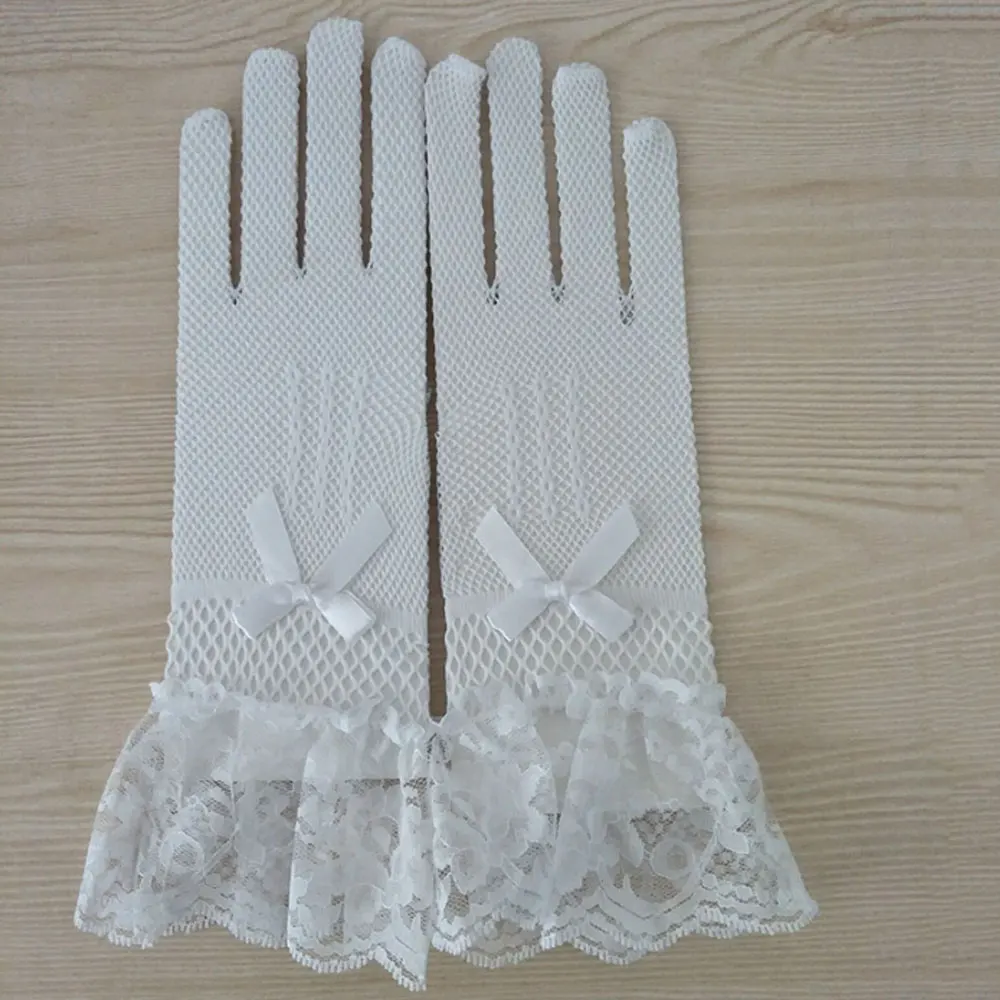 Женские ажурные перчатки, черные, белые, летние солнцезащитные перчатки для вождения, вечевечерние, новинка сексуальный кружевной с бантом, 2019