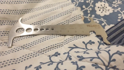 Тестер растяжки цепи как на рисунке. Товар пришёл очень быстро, за 18 дней в Финляндию. Пока не использовал, но с виду выглядит хорошо, царапин нет, насколько точны - нужно сравнивать с другими производителями. На данном этапе - спасибо продавцу, рекомендую.