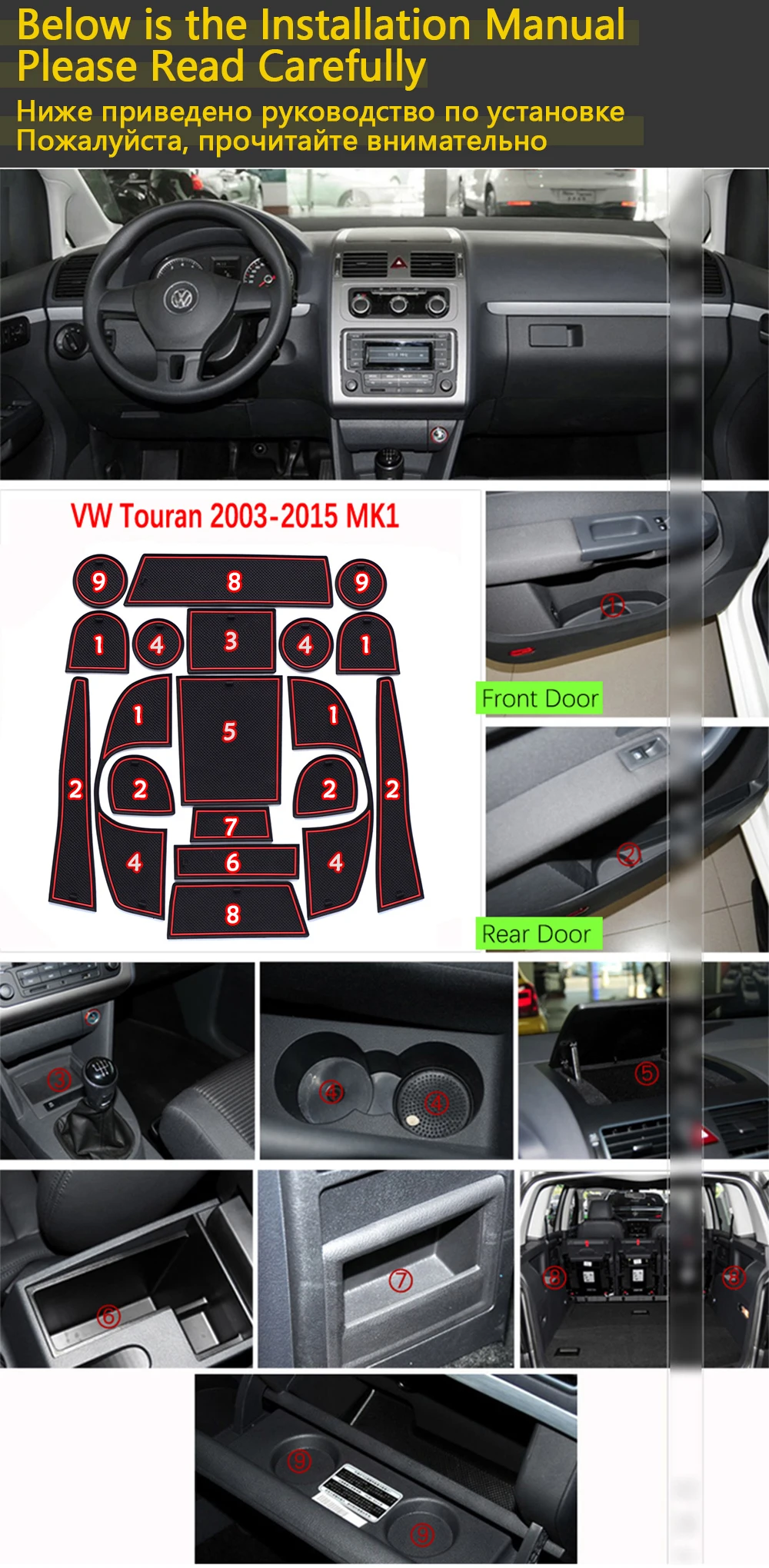 Противоскользящий резиновый коврик для чашки, дверной паз, коврик для VW Touran Volkswagen Age MK1 2003 2015 2006 2009 2012 2014, аксессуары, коврик для телефона