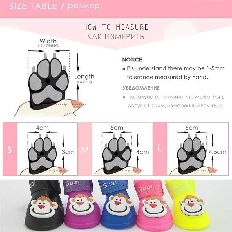 -Выберите длину и ширину собачья обувь не может быть меньше, чем длина и ширина для больших собак, для ног, должно быть больше, чем для больших собак, таблице Согласно длине стопы и широкий 0,5 см.
