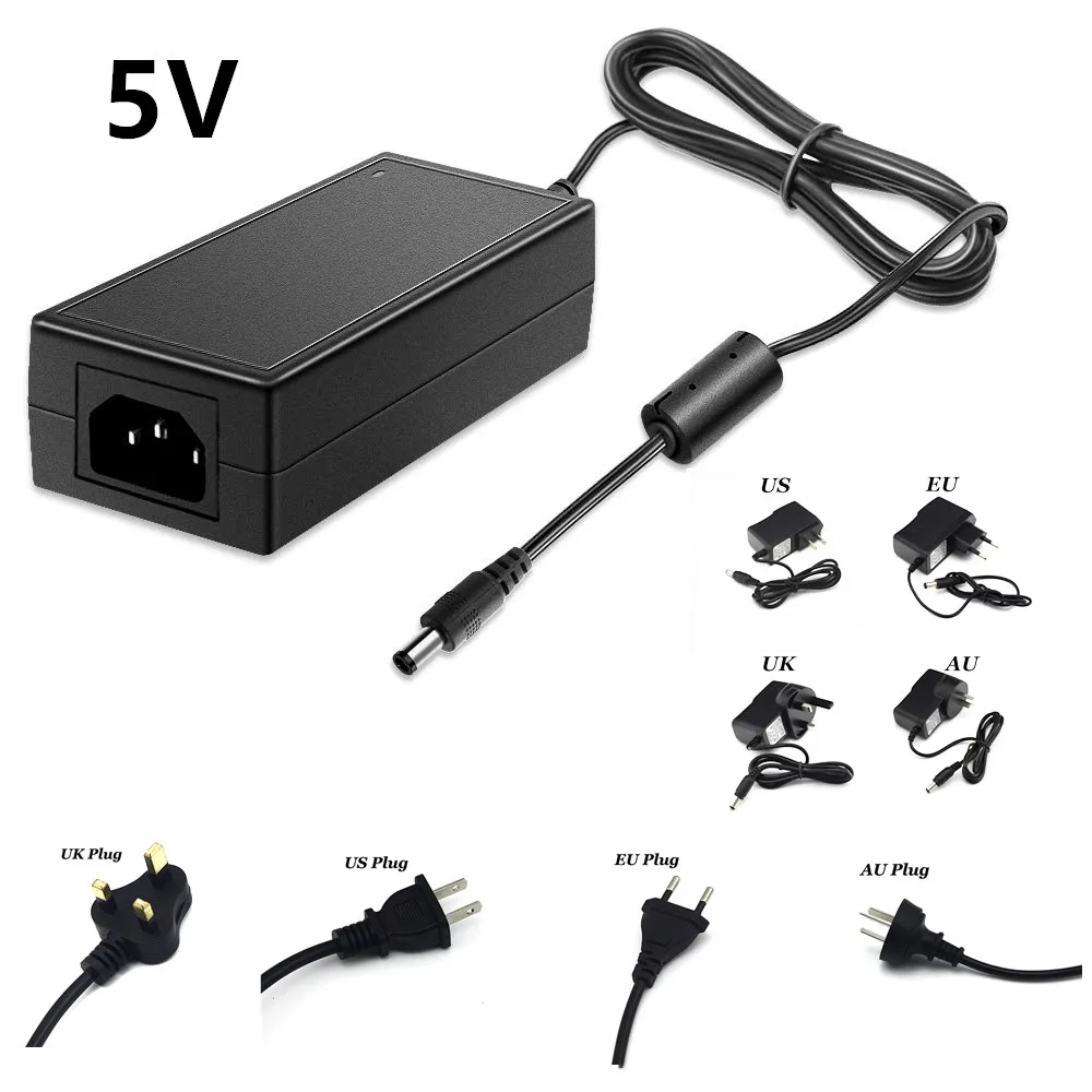5V AC DC адаптер питания 100V ~ 240V AC с 5,5x2,1mm штепсельной вилкой для светодиодной ленты камеры беспроводной маршрутизатор ЖК-монитор светодиодный драйвер