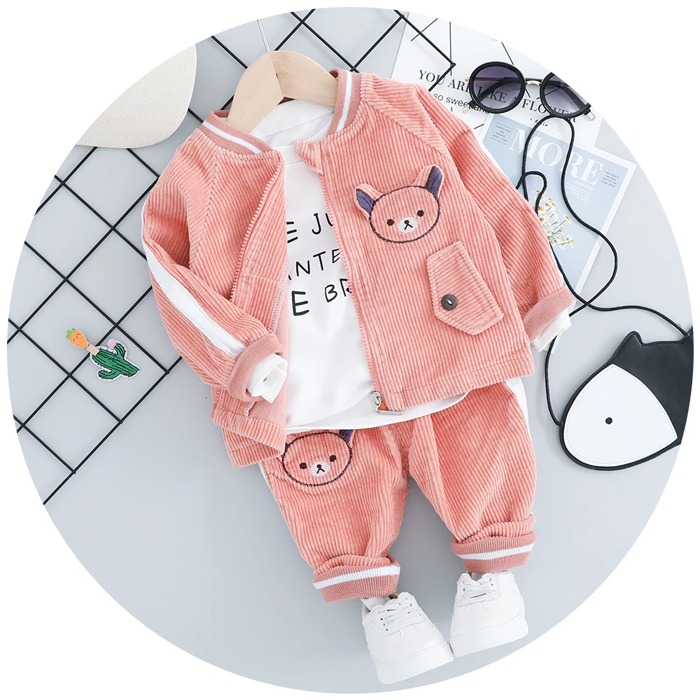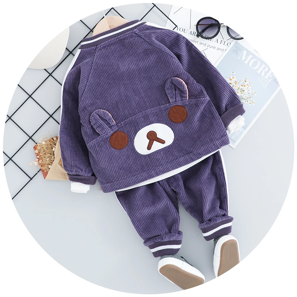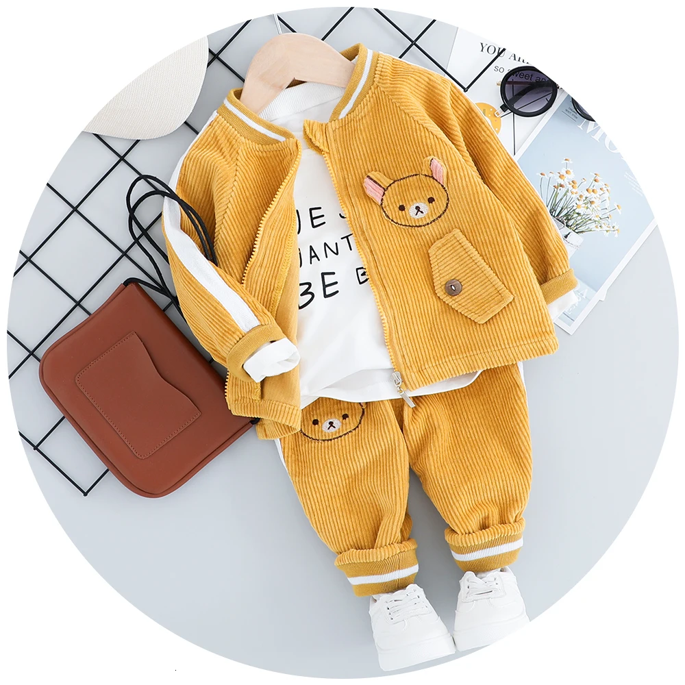 Детский костюм, Новинка осени 2022, одежда для мальчиков, вельветовый костюм из трех предметов с мультяшным медведем, Детская футболка + брюки