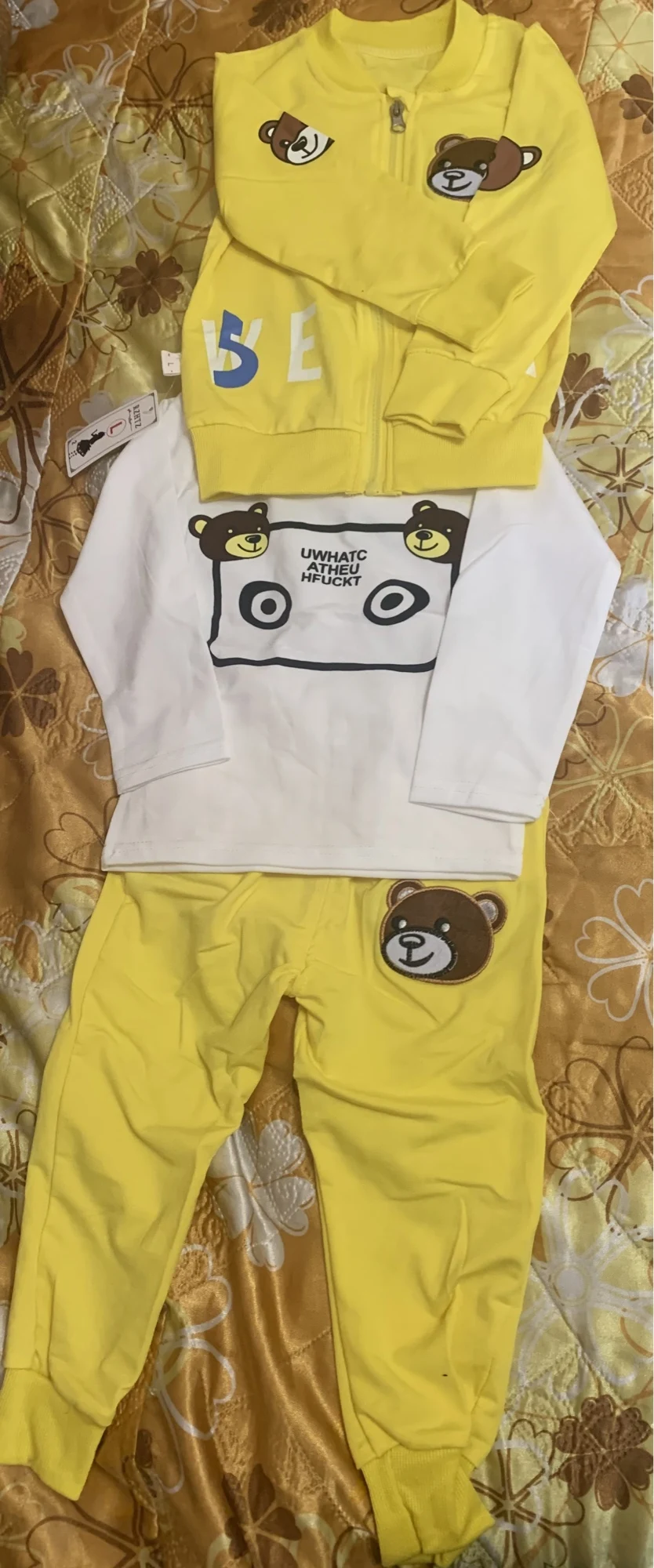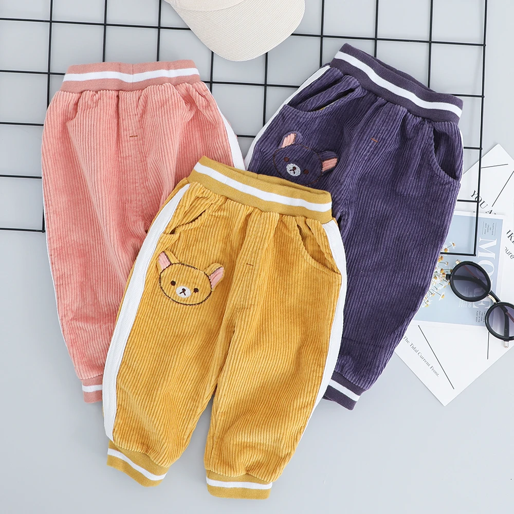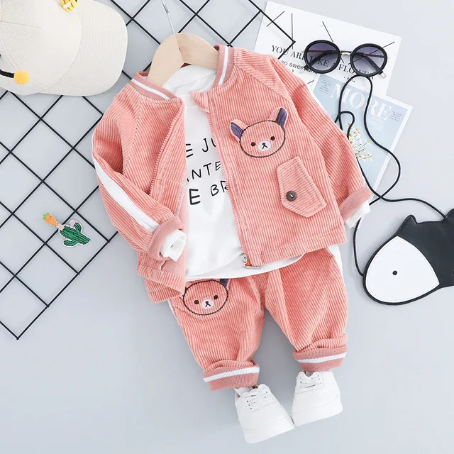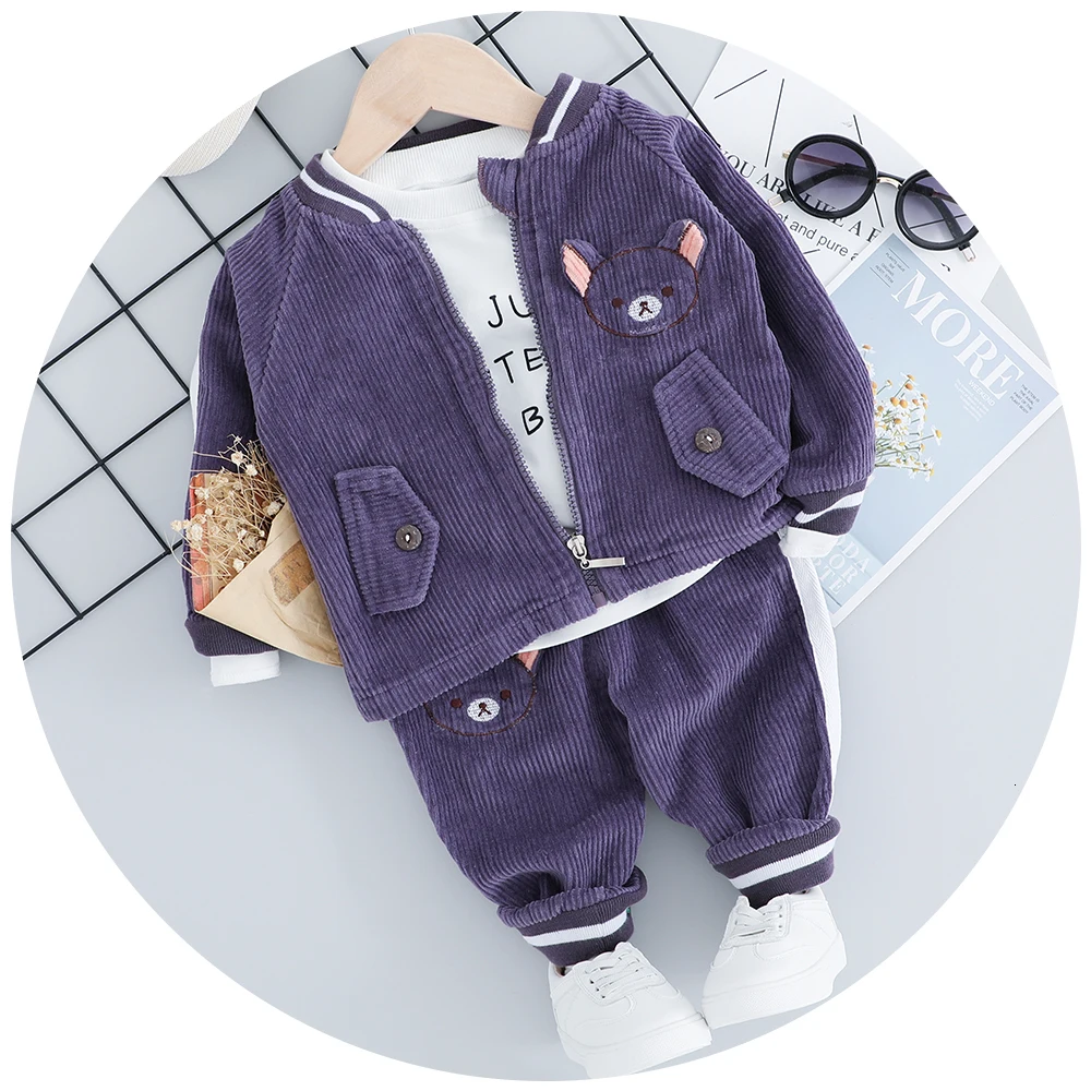 Детский костюм, Новинка осени 2022, одежда для мальчиков, вельветовый костюм из трех предметов с мультяшным медведем, Детская футболка + брюки