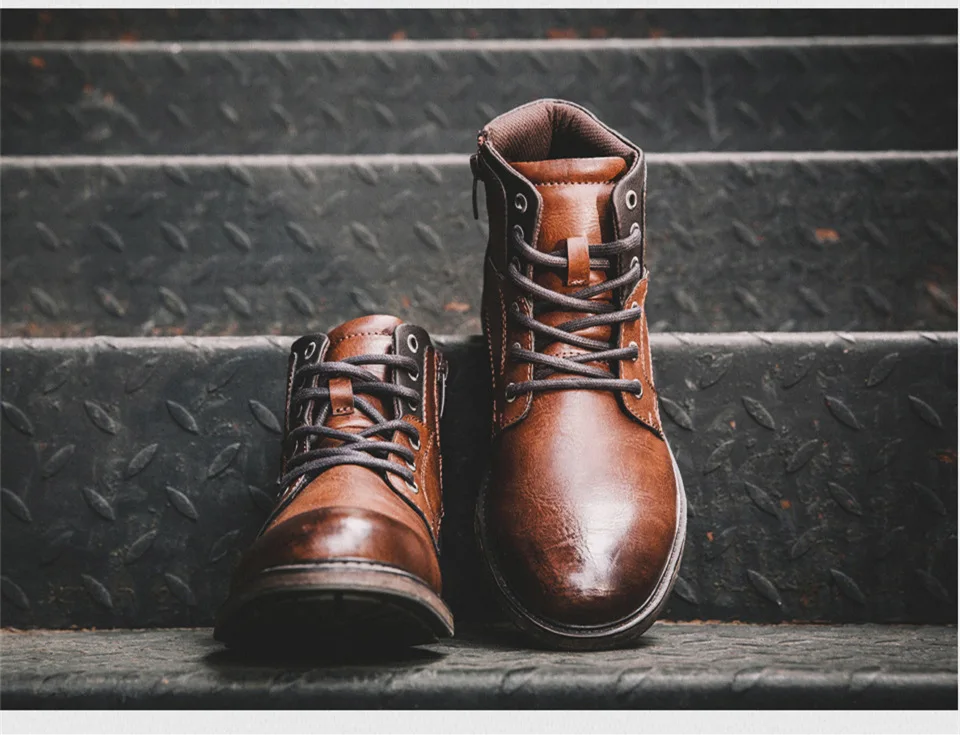 Ботинки мужские кожаные, на шнуровке, в винтажном стиле, весна-осень