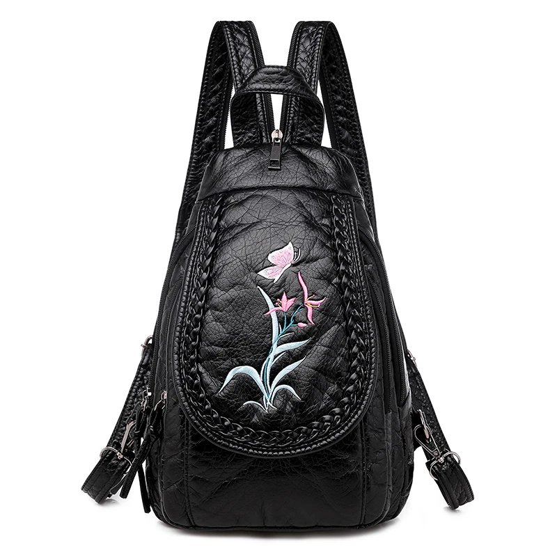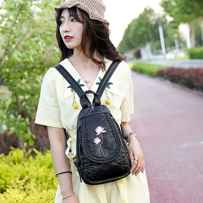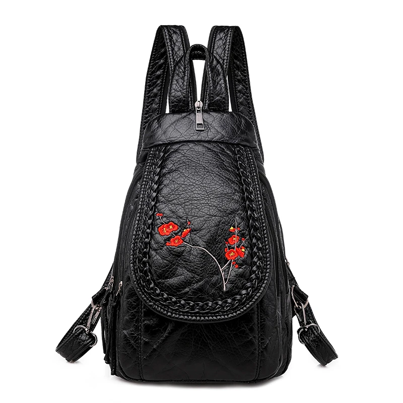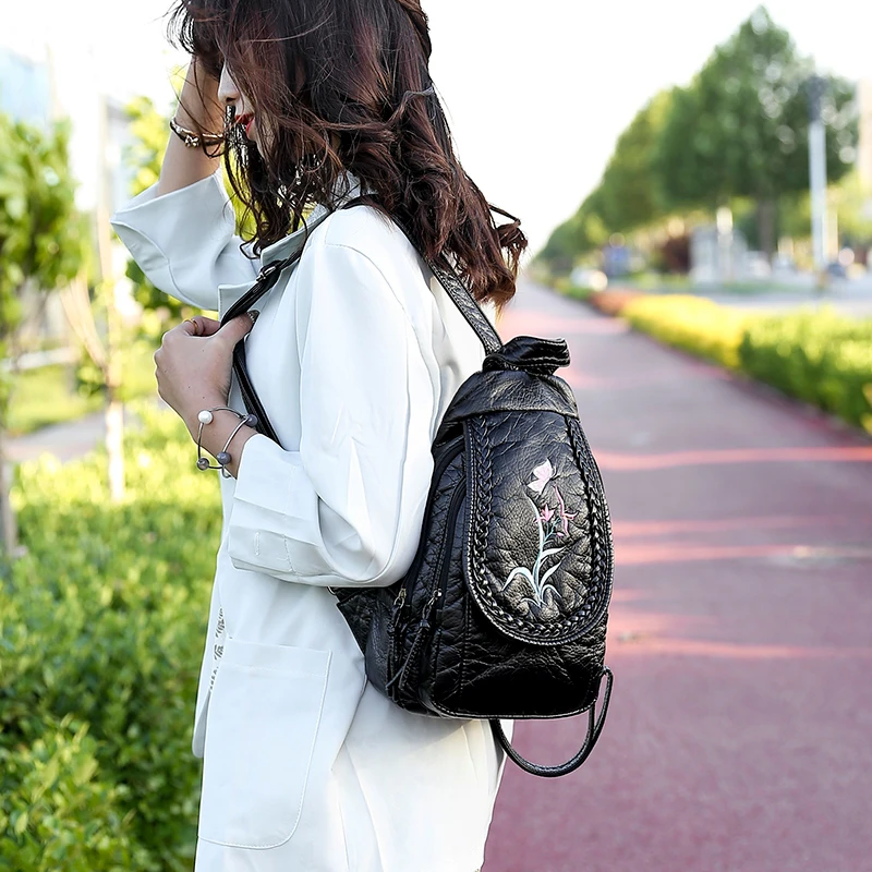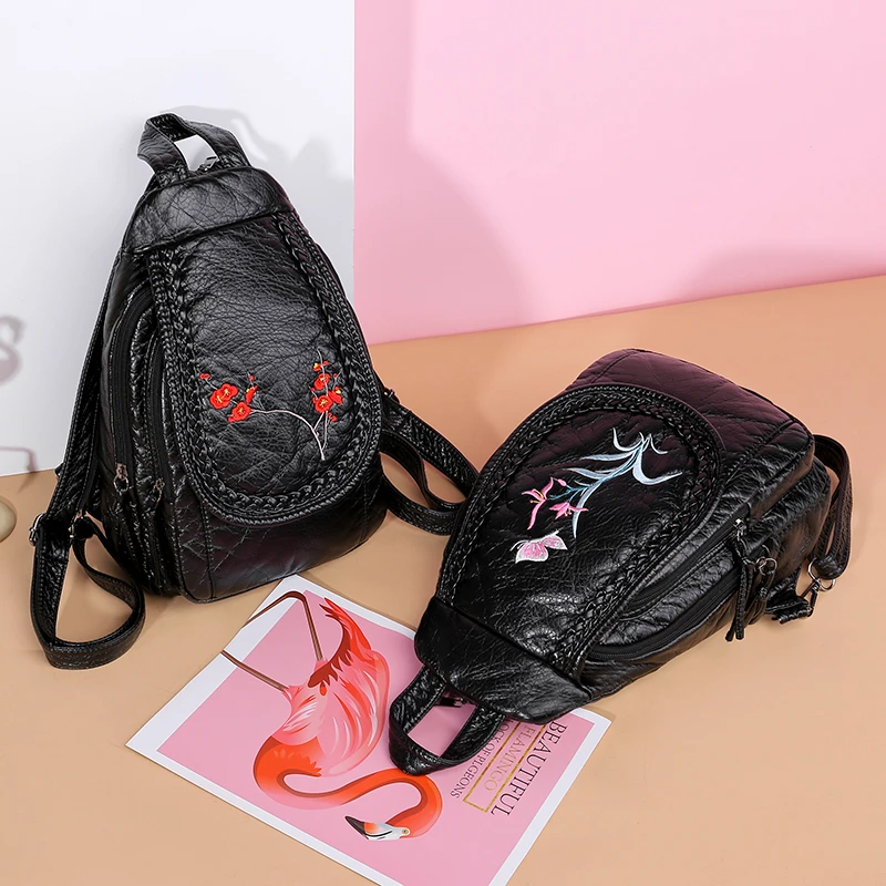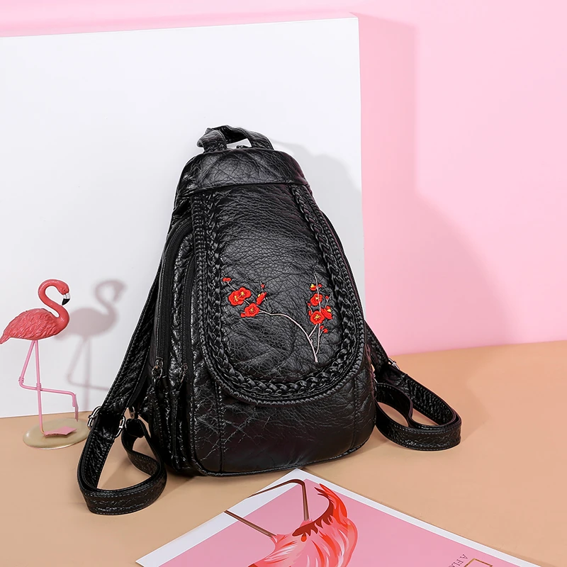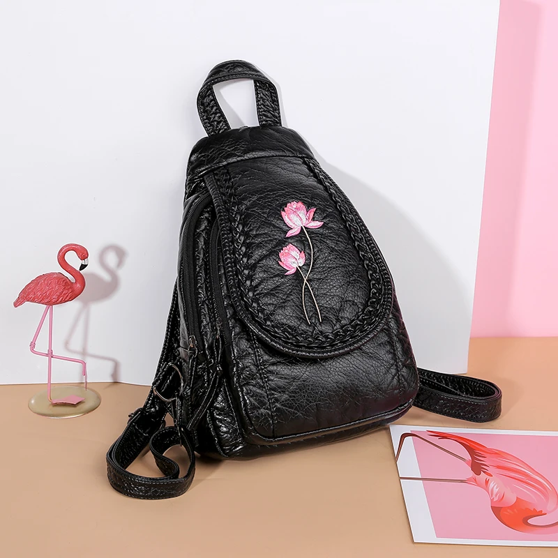 Женский рюкзак 3-в-1 из мягкой кожи, нагрудная сумка с вышивкой и цветами, женский рюкзак