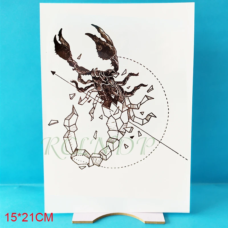 Водостойкая Временная наклейка тату-Скорпион в виде насекомых, флеш-тату ненастоящие тату, большие татуировки для женщин, мужчин, женщин