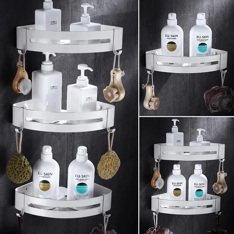 Угловая полка для ванной комнаты, алюминиевая белая полка для душа,...