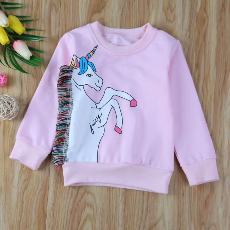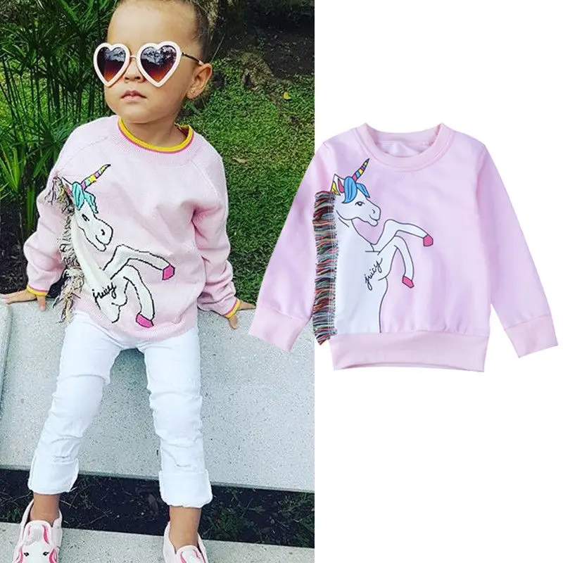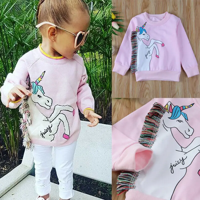 Детская толстовка с единорогом для маленьких девочек; Теплая одежда; Топы!