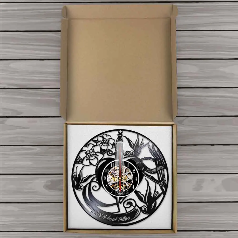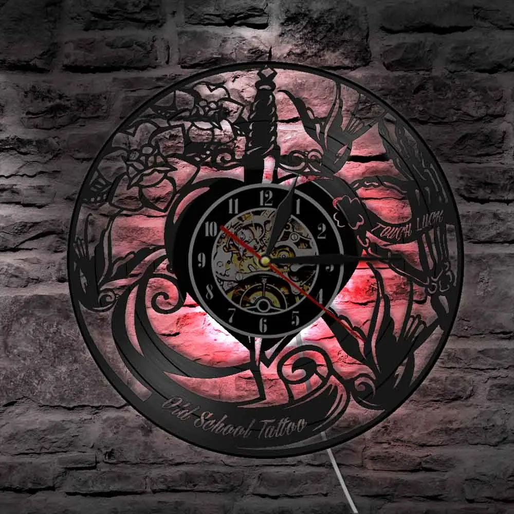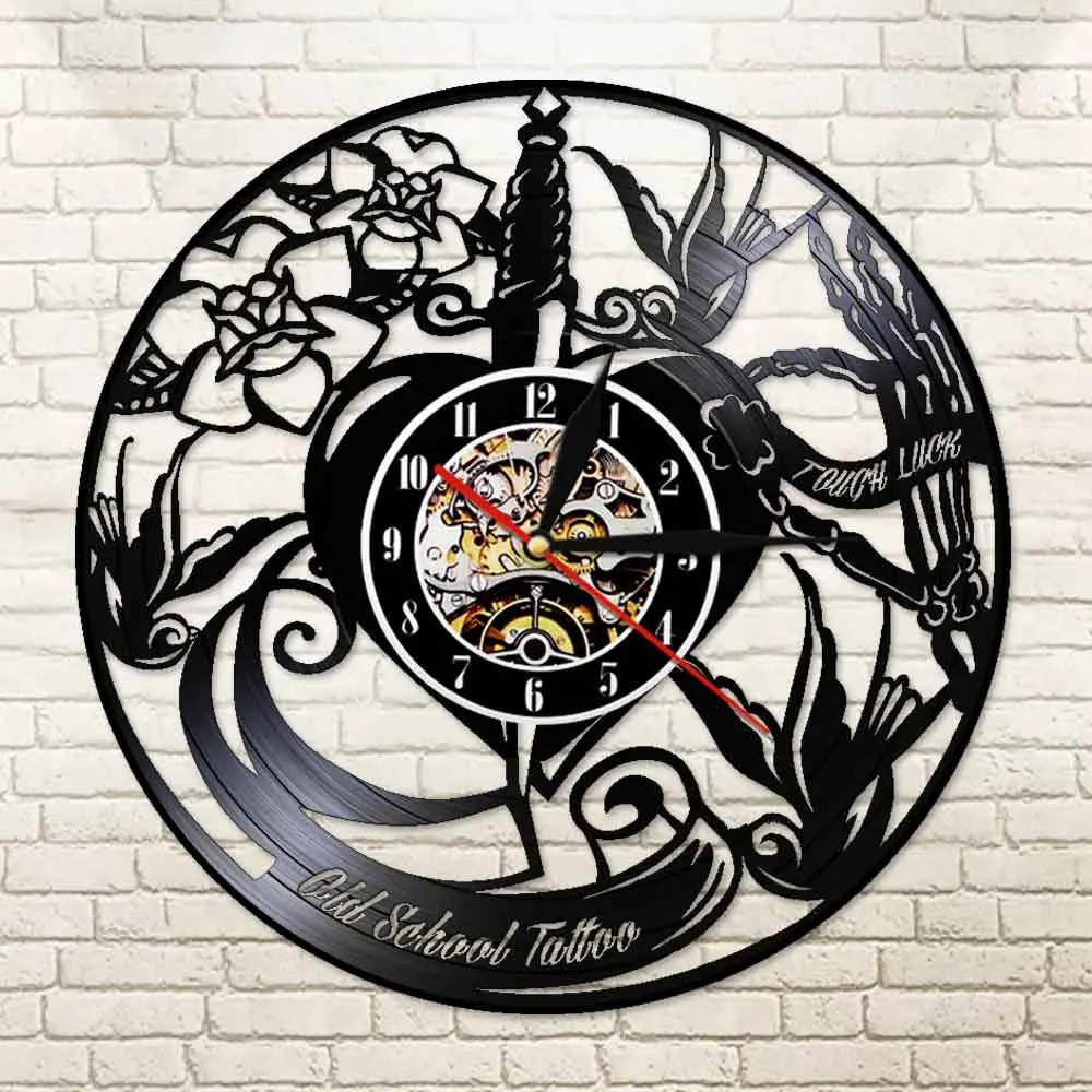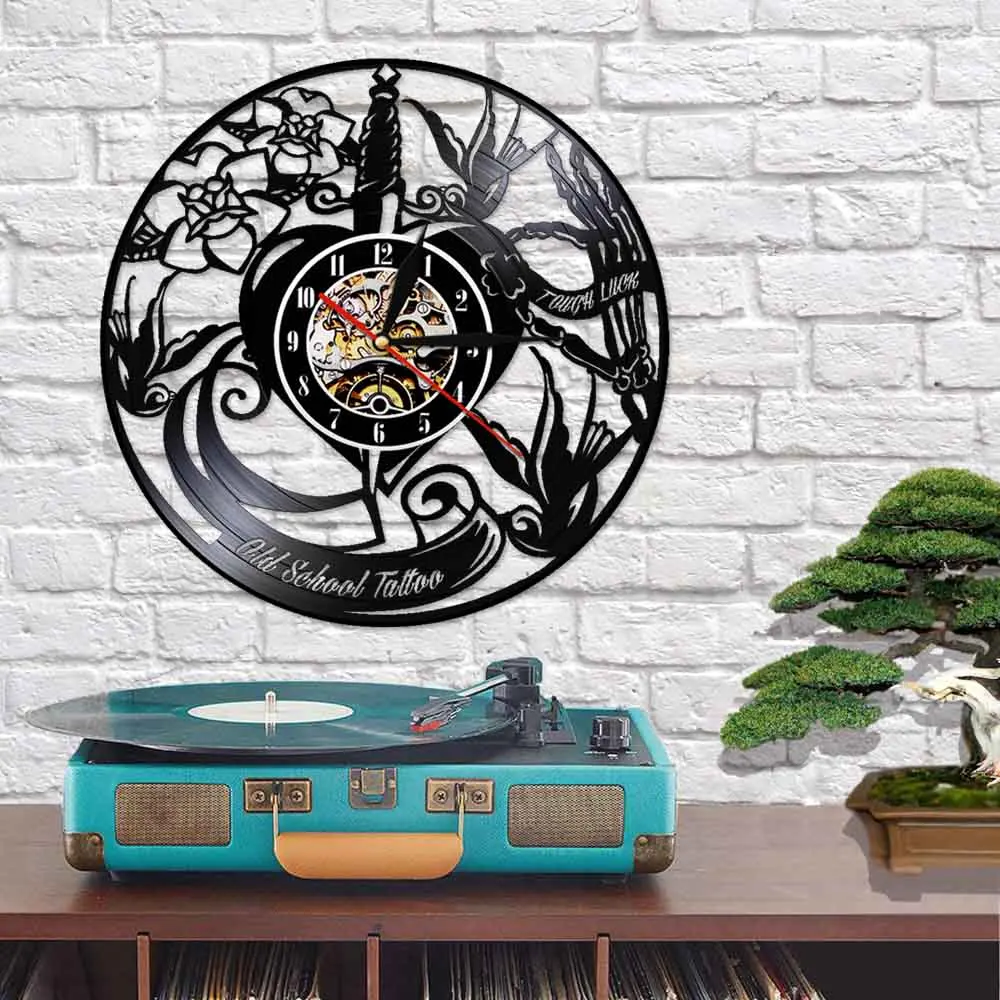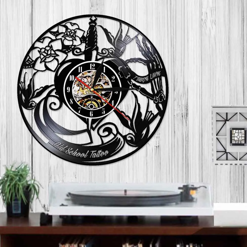 Классические старые школьные настенные часы для тату-студии с виниловой пластиной, эксклюзивные часы для тату-салона, деловой знак, музыкальный альбом, часы, подарок тату-мастеру