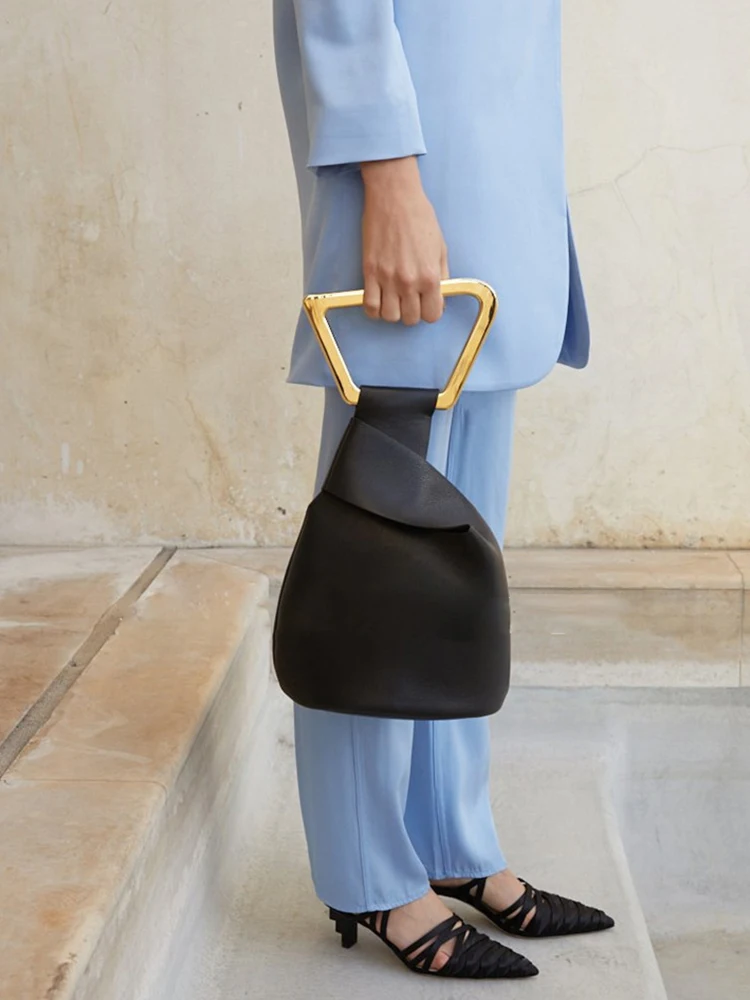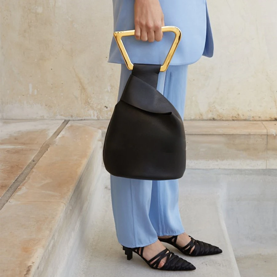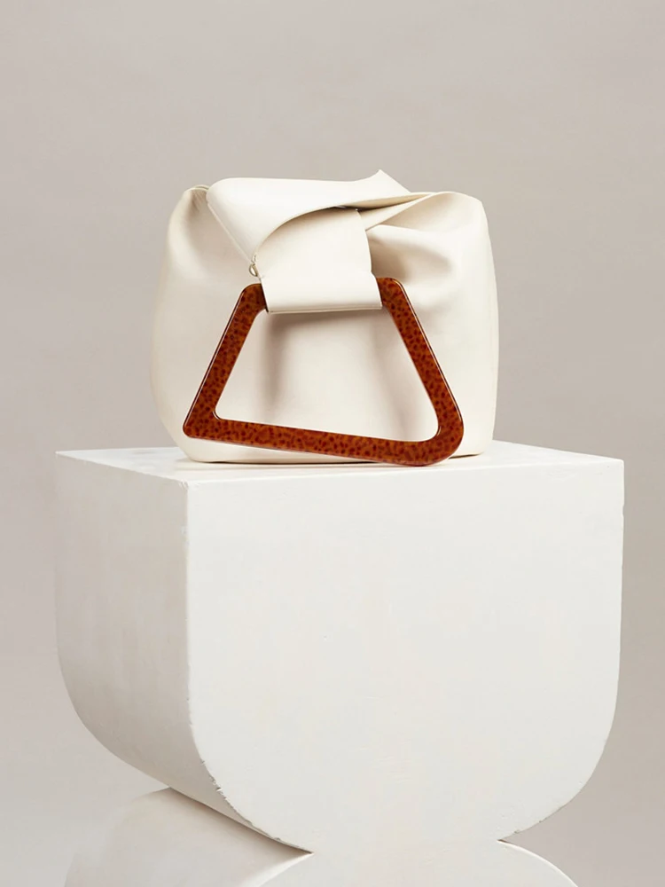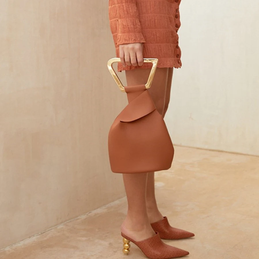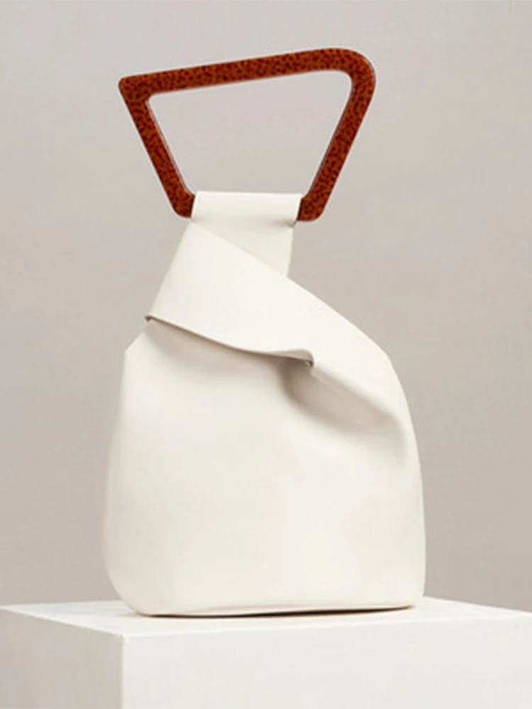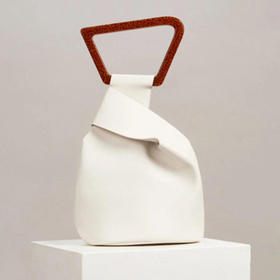Женская сумка из искусственной кожи, с акриловой ручкой, однотонная летняя сумка-мешок нестандартной формы, 2021