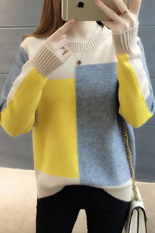 Вязаный пуловер, женский свитер 2022, свитер с длинным рукавом на о...