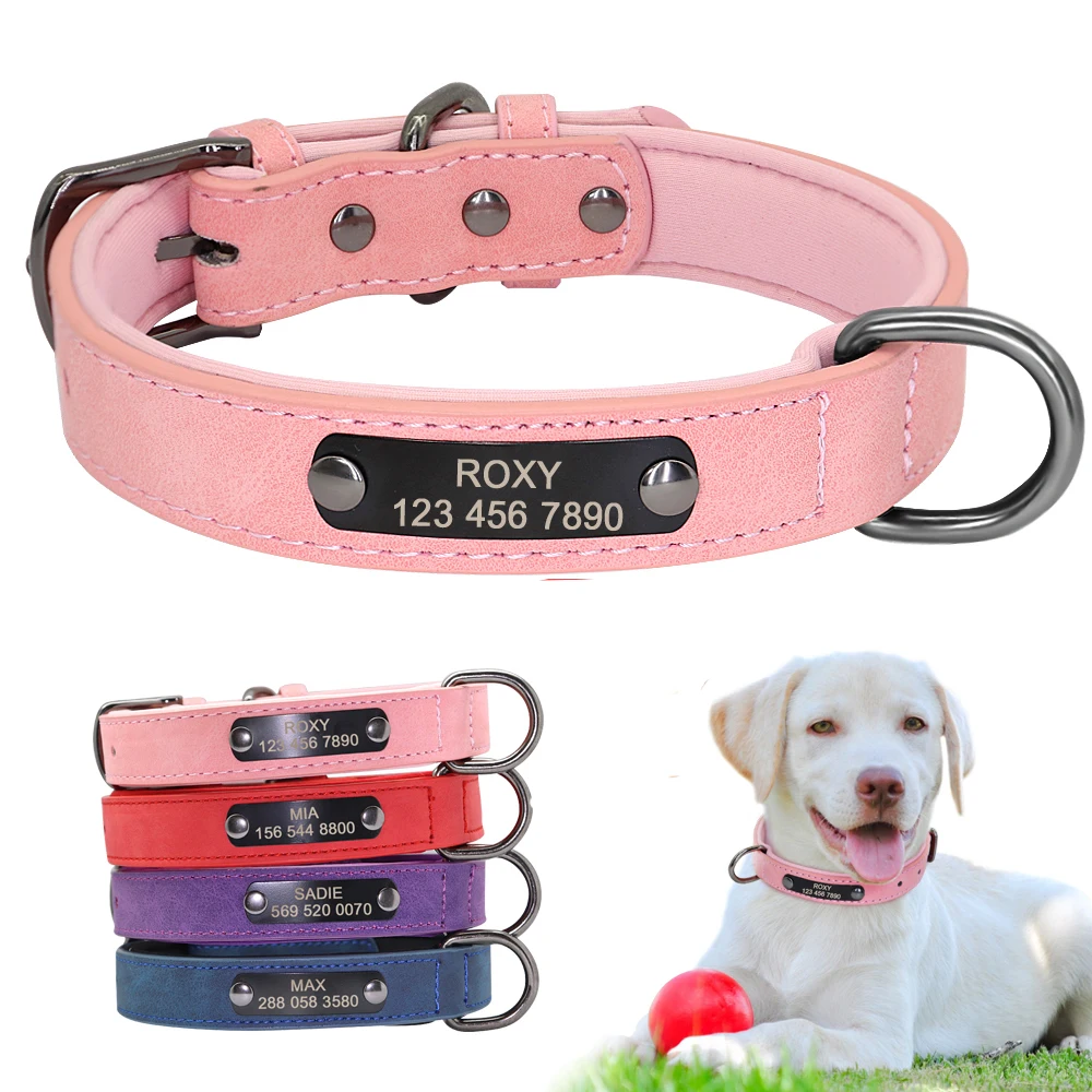 Персонализированный ошейник для собак с гравировкой на заказ, ошейник для собак, кожаный ошейник для щенков, кошек, идентификатор для маленьких, средних, больших собак, питбуля