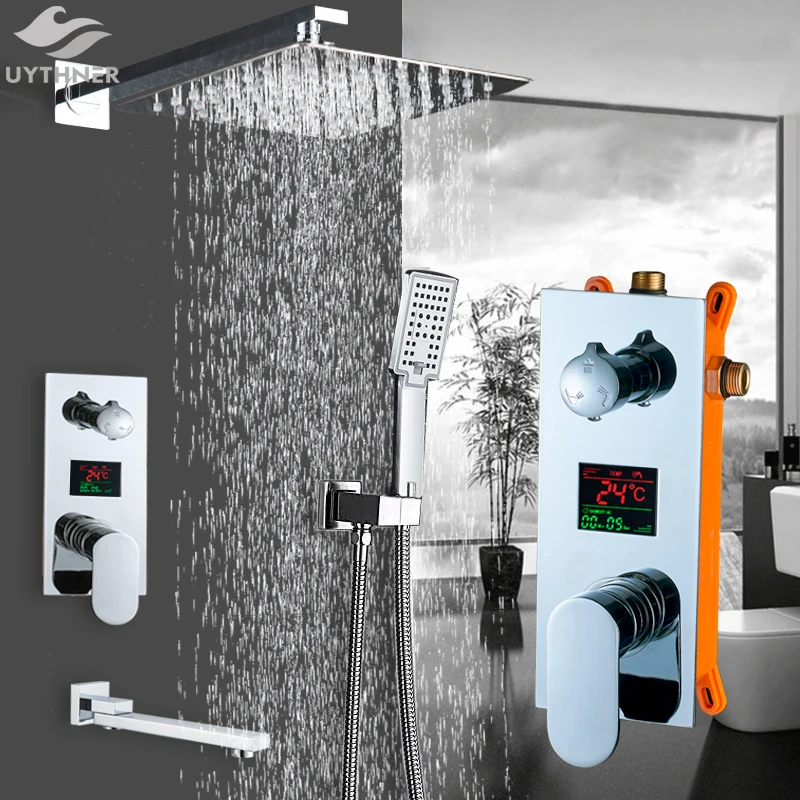 Душевая система Uythner, скрытая хромированная, с тропическим душем и настенным креплением
