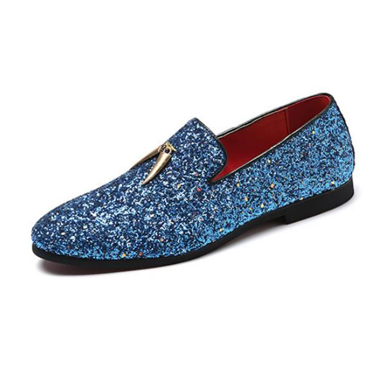 Роскошные мужские лоферы, обувь, слипоны, Мокасины, блестящие, украшенные блестками, стильная женская обувь для вечерние НКИ, синее платье, свадебные туфли ST372