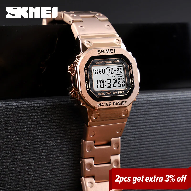 Часы SKMEI женские цифровые в стиле ретро, модные многофункциональные, с браслетом из нержавеющей стали, водонепроницаемость 30 м, 1433