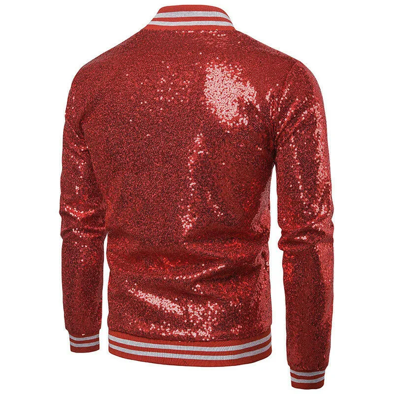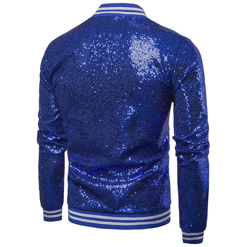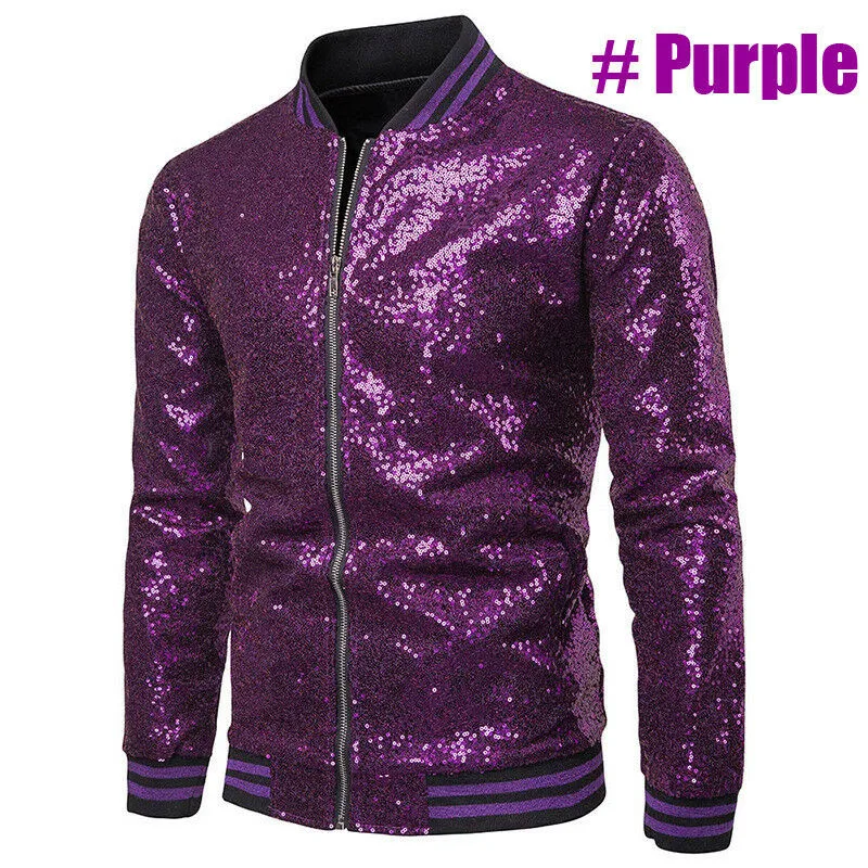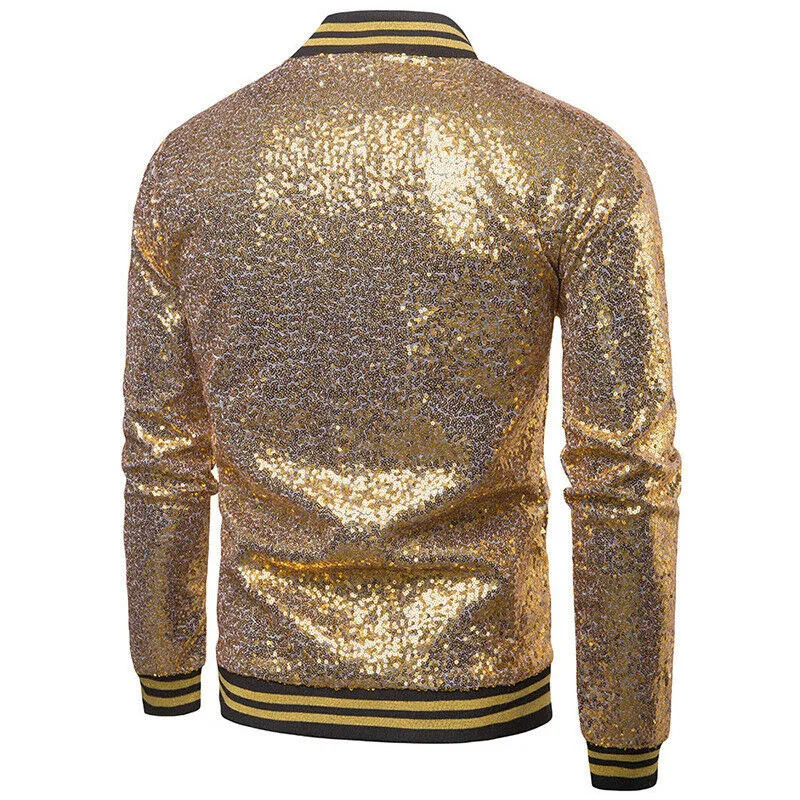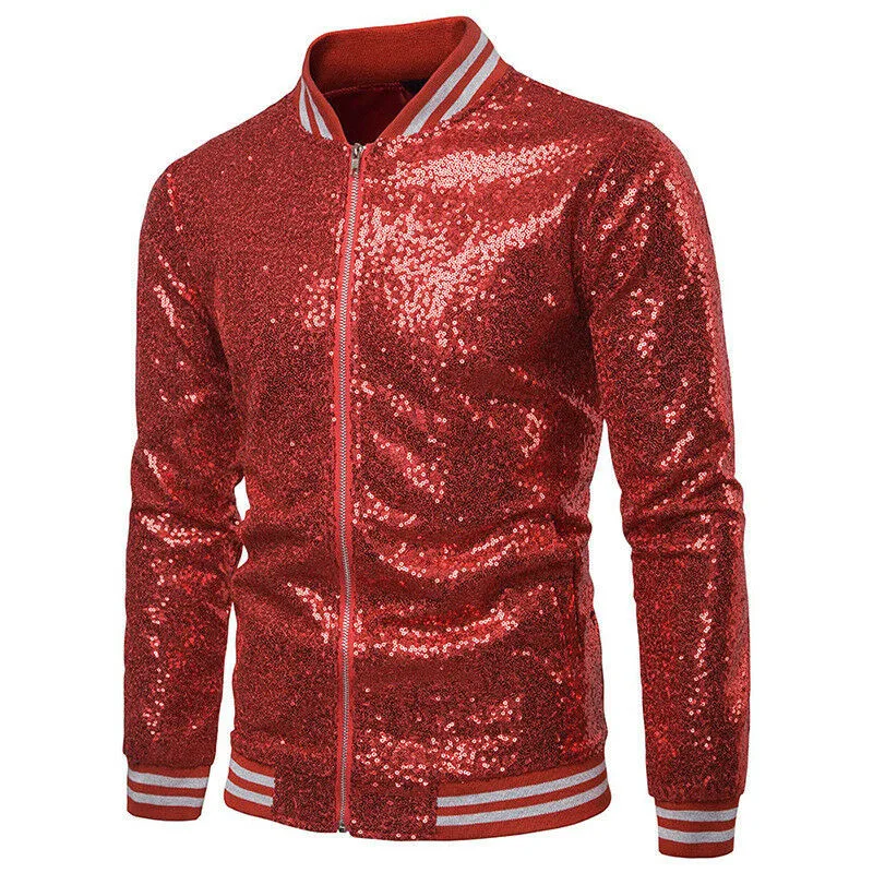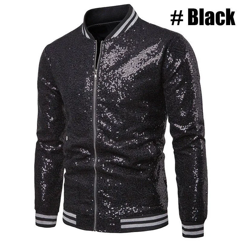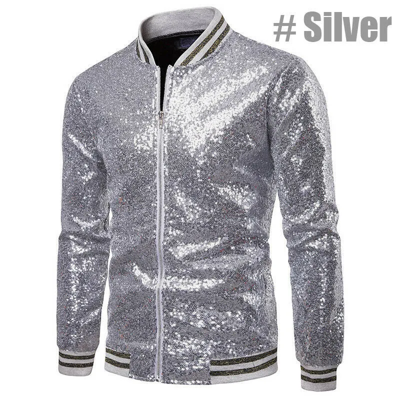 Мужская блестящая верхняя одежда, новинка блестки в виде пайеток, однотонная куртка с длинными рукавами, для ночного клуба, на молнии, для диджея, сценического костюма, осень