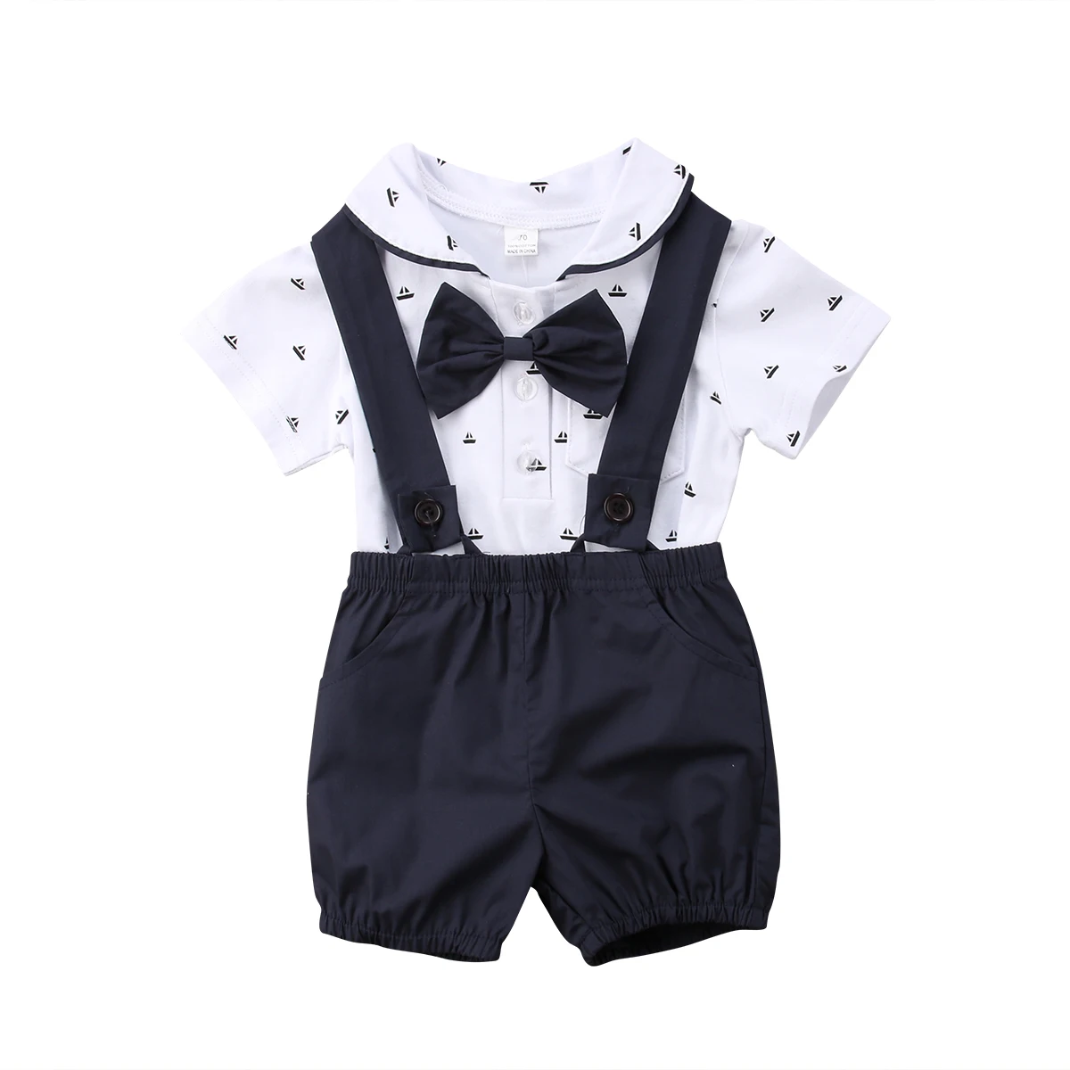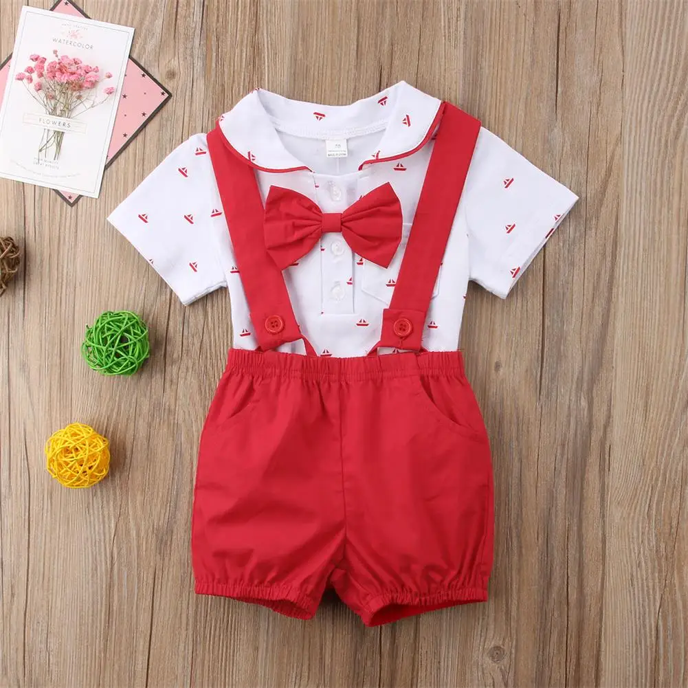Лето 2019, наряд для новорожденных, для маленьких мальчиков, комплект одежды, праздничный комбинезон для малышей, комбинезон, шорты, джентльменский Черный, красный комплект