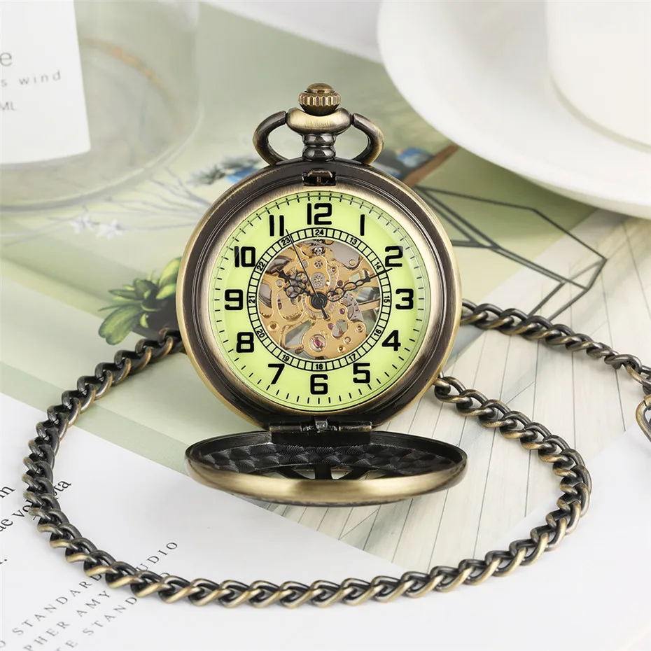 Светящиеся Механические карманные часы с ручным заводом в стиле стимпанк, карманные Подвесные часы на цепочке, антикварные часы для мужчин, женщин, мужчин