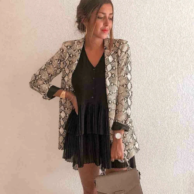 Женский блейзер со змеиным принтом, костюм с длинным рукавом, пальто, блейзеры, байкерская куртка, верхняя одежда, женские топы