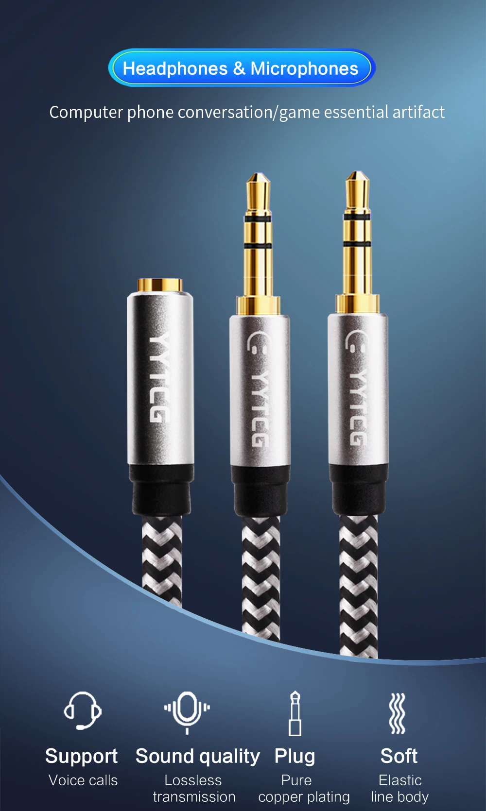 Аудиокабель-разветвитель со штекером 3,5 мм и разъемом Aux для наушников