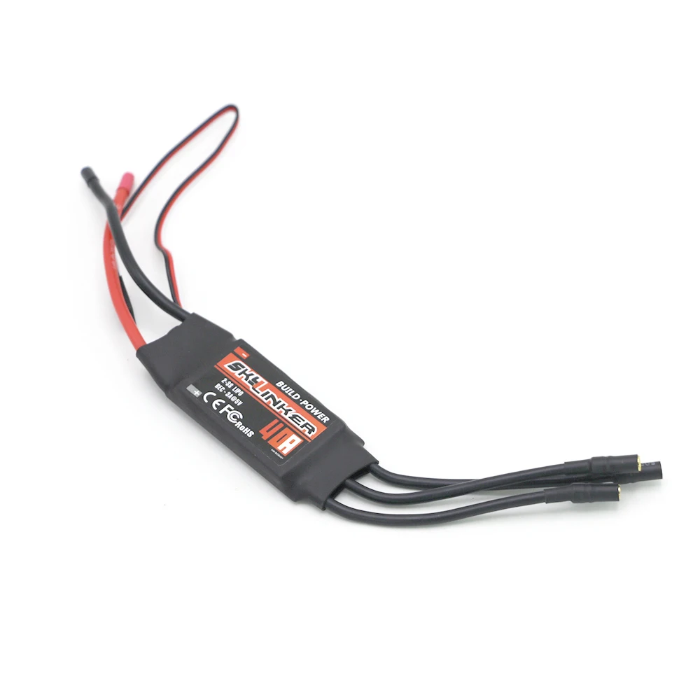40A ESC:Непрерывный/Пиковый ток: 40A/55AКоличество секций батареи: 2-3S LiPoBEC выход: Линейный режим: 5 В, 3 АШнур питания: красный-16 СРГ-100 мм * 1; Черный-16 СРГ-100 мм * 1Выходная линия: синий-16-75 мм * 3Штепсельная Вилка: штепсельная вилка T (может быть настроена в соответствии с требованиями)Выход штекер: 3,5 мм bananer подключения (женские)