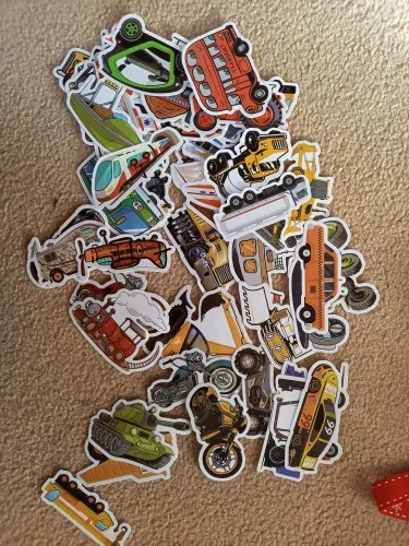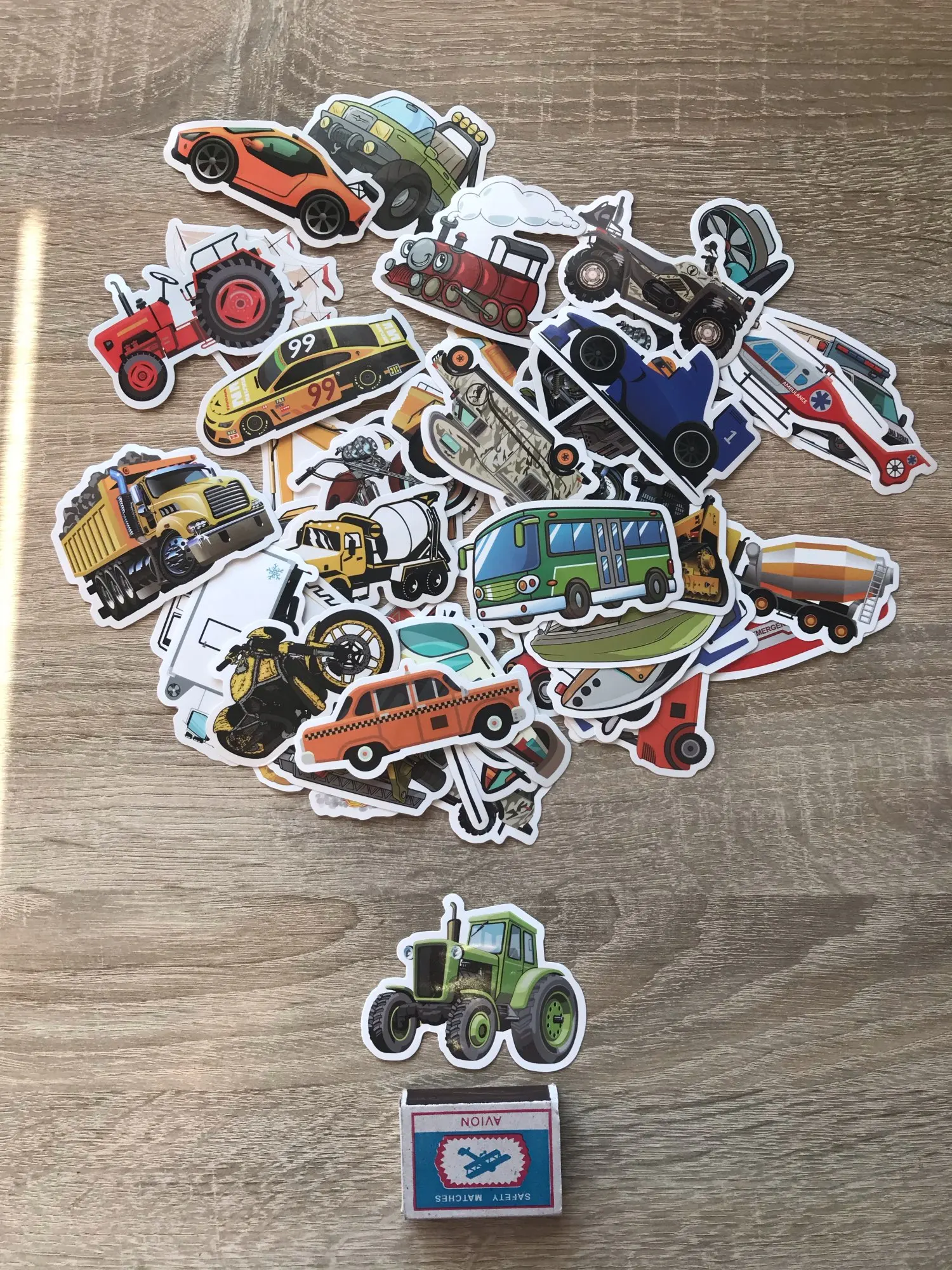 Отличные стикеры! Очень много различных видов транспорта. Тут и фрегата, и танк, и электромобиль, и погрущик. Разные стили рисовки, некоторые мультяшные, а некоторые с очень детальной рисовкой. Цвета насыщенные, рисунки чёткие, все красиво и аккуратно! Ровно 50 штук в наборе, повторов нет, все стикеры разные. Товар рекомендую! Пришла посылка весьма быстро, упаковано было в обычный пакет, кинули в почтовый ящик. Хороший магазин, буду заказывать тут ещё! Спасибо :)