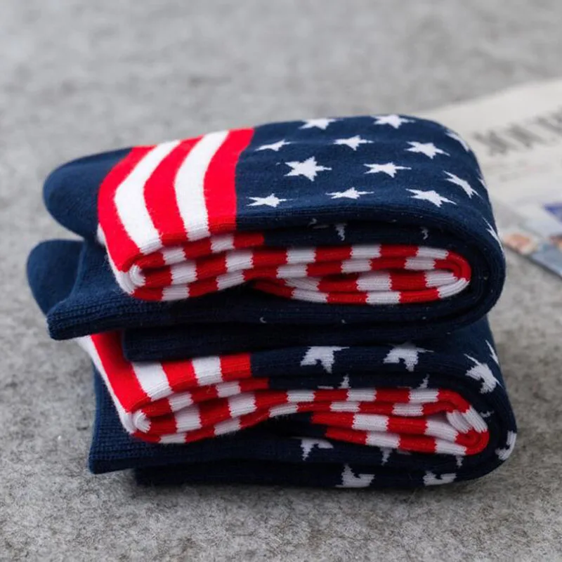 1 пара носков с американским флагом, носки с американским флагом Трампа, хлопковые полосатые носки, забавные носки Трампа, спортивные однотонные длинные носки без пятки