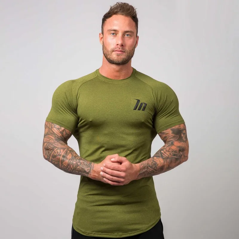 Сверхэластичная Мужская футболка для фитнеса и тренировок, быстросохнущая