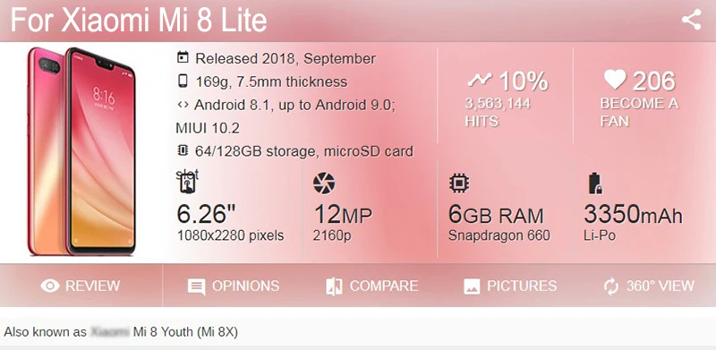 Номер моделиFor xiaomi mi8 lite Mi8 Youth