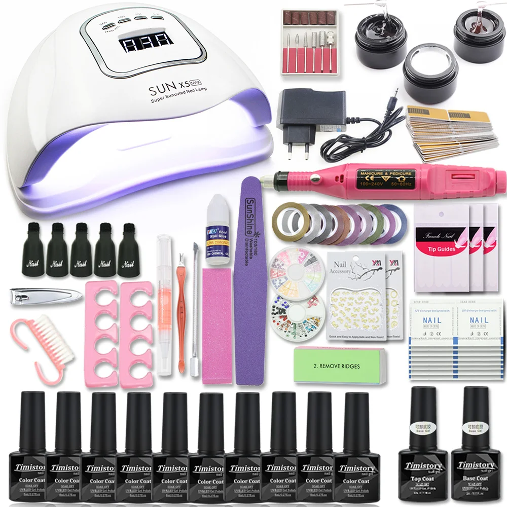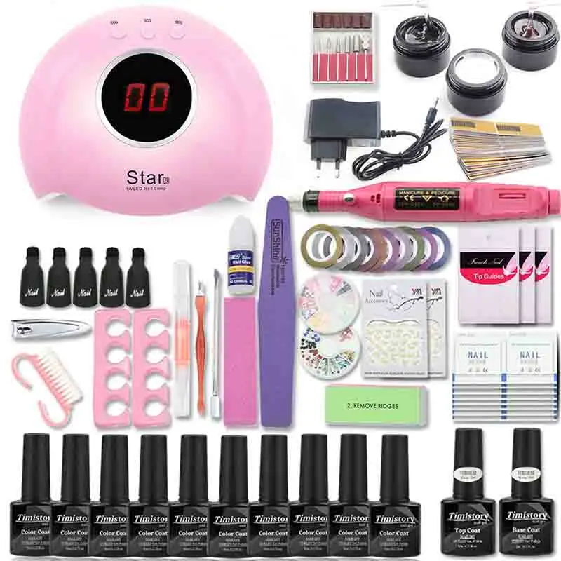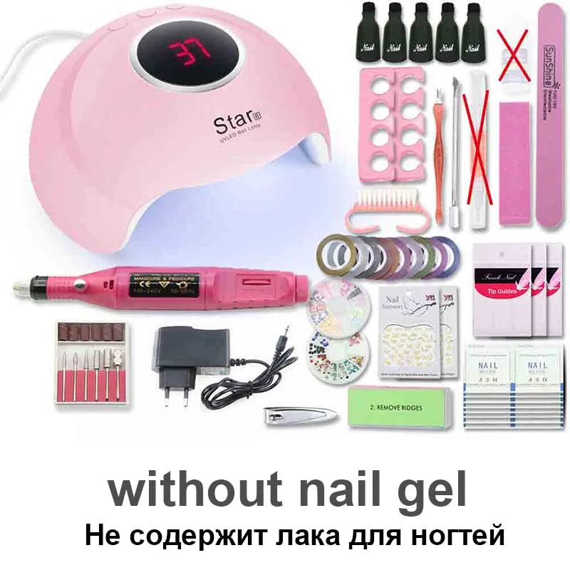 Маникюрный набор, 80 Вт, лампа для ногтей, набор для ногтей и 10 цветов, УФ-гель для ногтей, набор инструментов для наращивания, гель для ногтей, наборы для маникюра, пилочки для ногтей