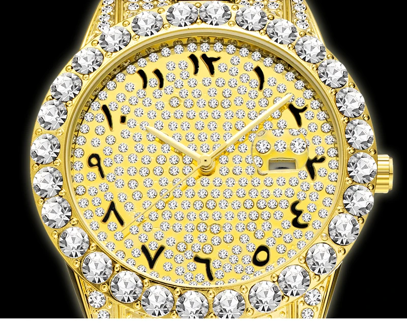MISSFOX, мужские часы с арабскими цифрами, Топ бренд, роскошные часы для мужчин, 18 К, золото, большой бриллиант, с канлендером, Классические мужские часы со льдом