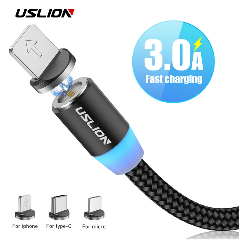USLION 2M 3A Быстрая зарядка Магнитный кабель Micro USB Type C каб...