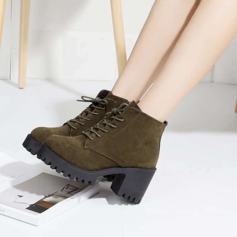 Матовые ботинки женские ботильоны на шнуровке на высоком каблуке черные ботинки на платформе botines mujer 2019 г. Зимние ботинки A348