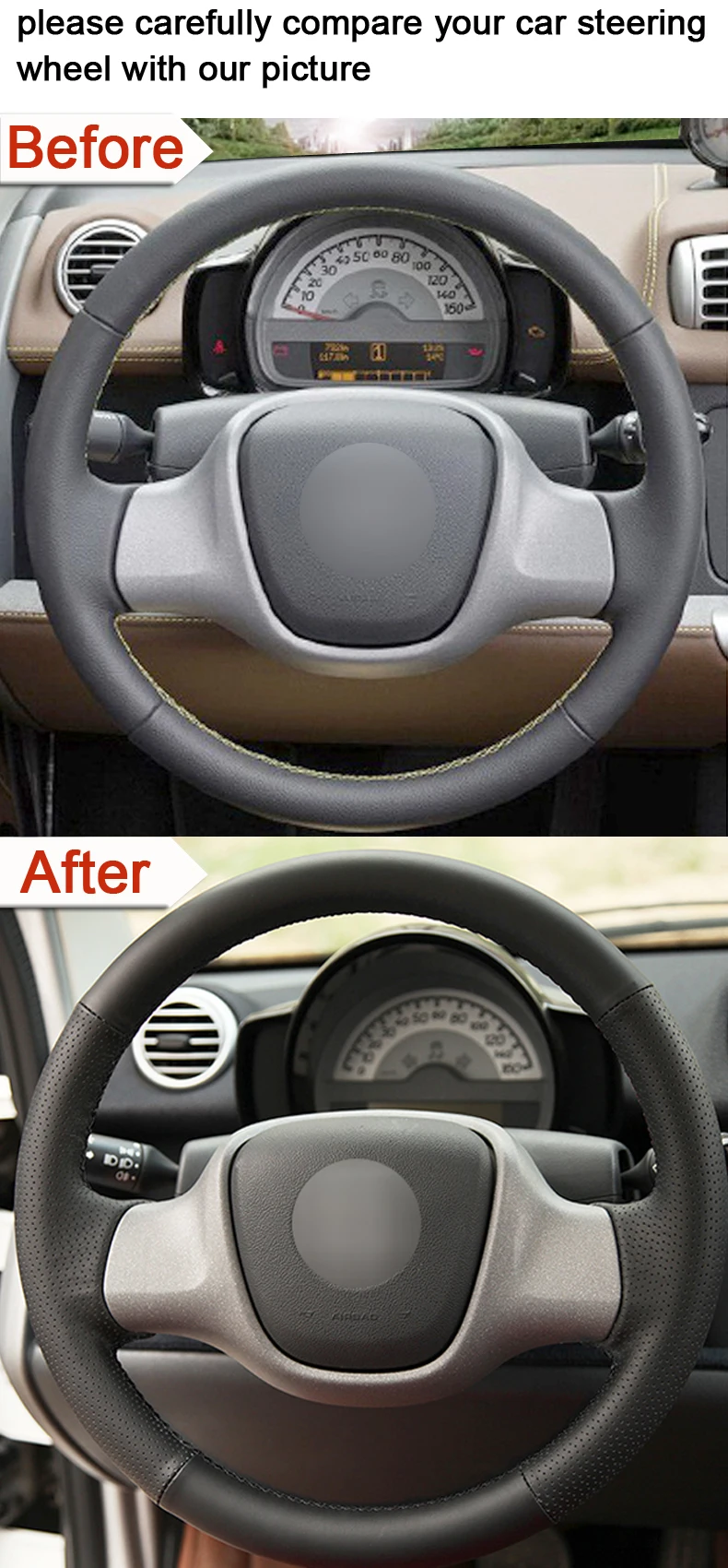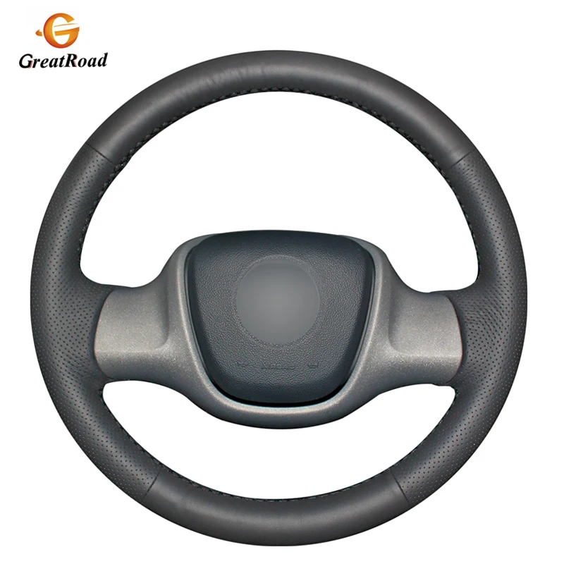 Сшитая вручную черная искусственная кожа Чехол рулевого колеса автомобиля для Smart Fortwo