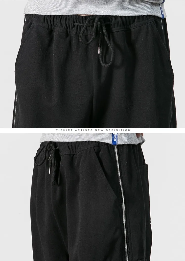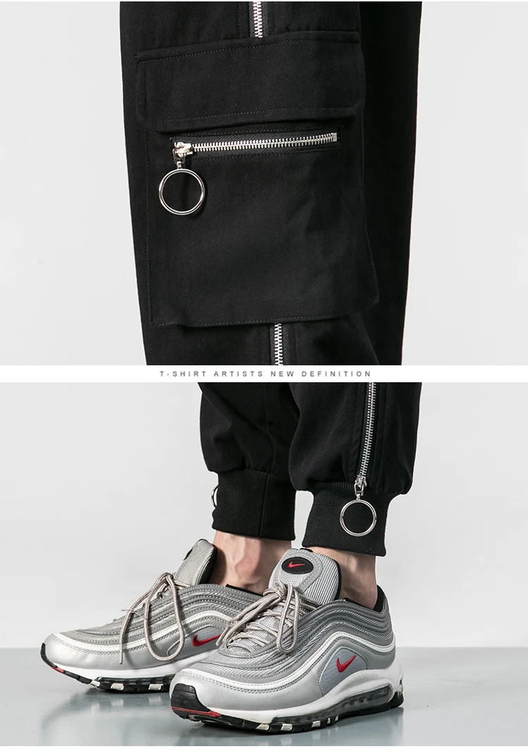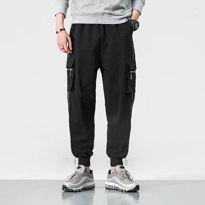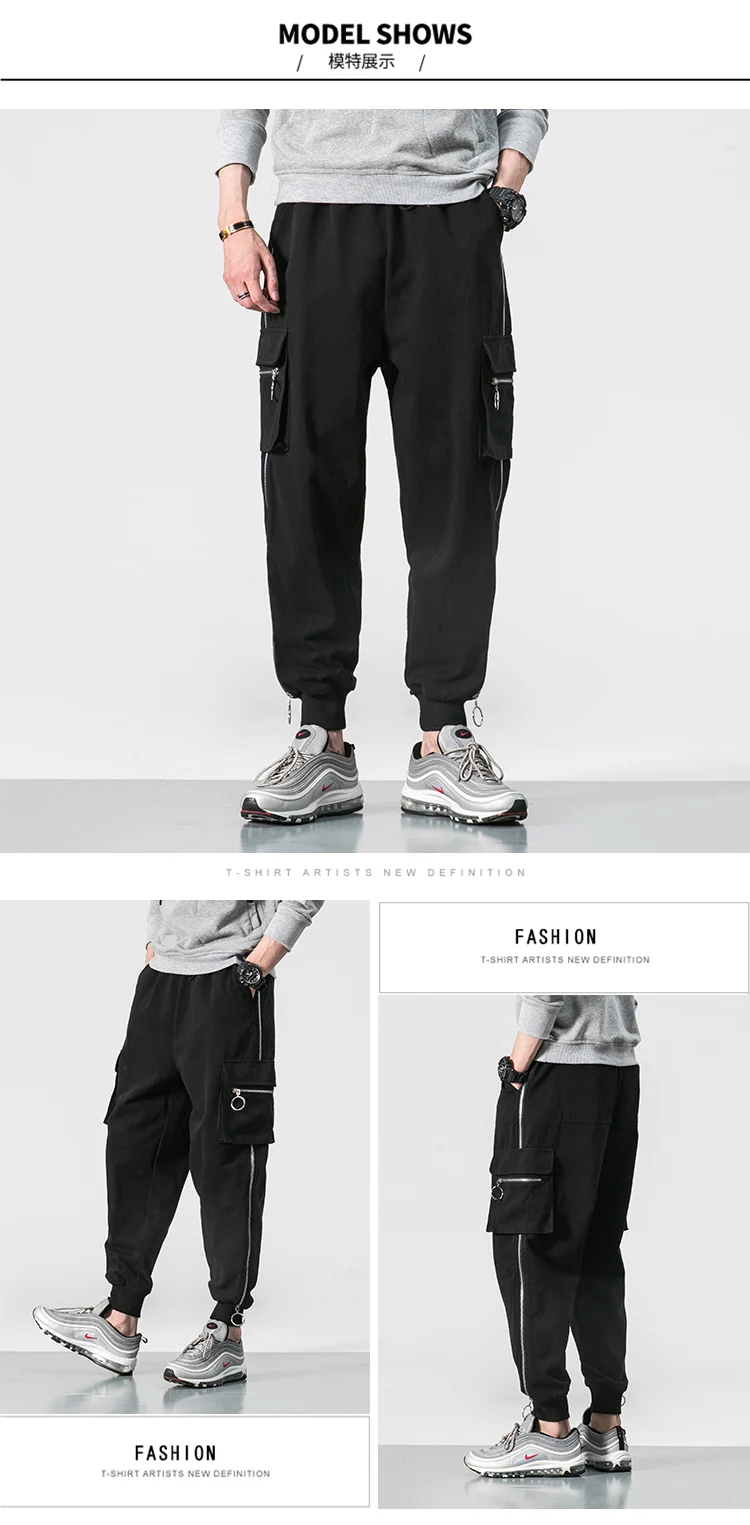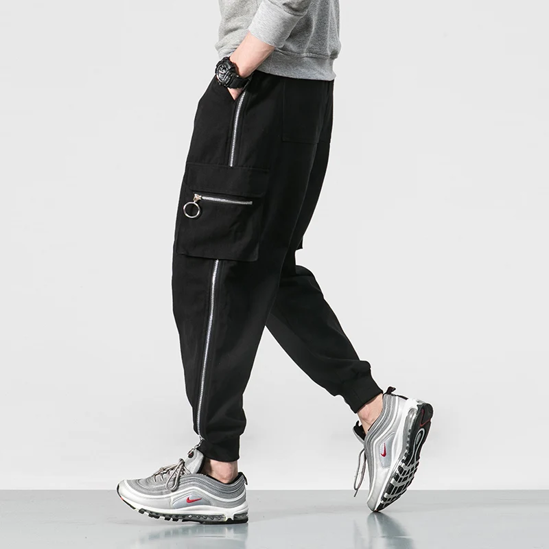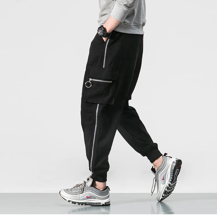 Модные мужские брюки для бега с боковой молнией и накладным карманом, хлопковые шаровары для мужчин 2020, новые весенне-осенние Черные Серые брюки для мужчин