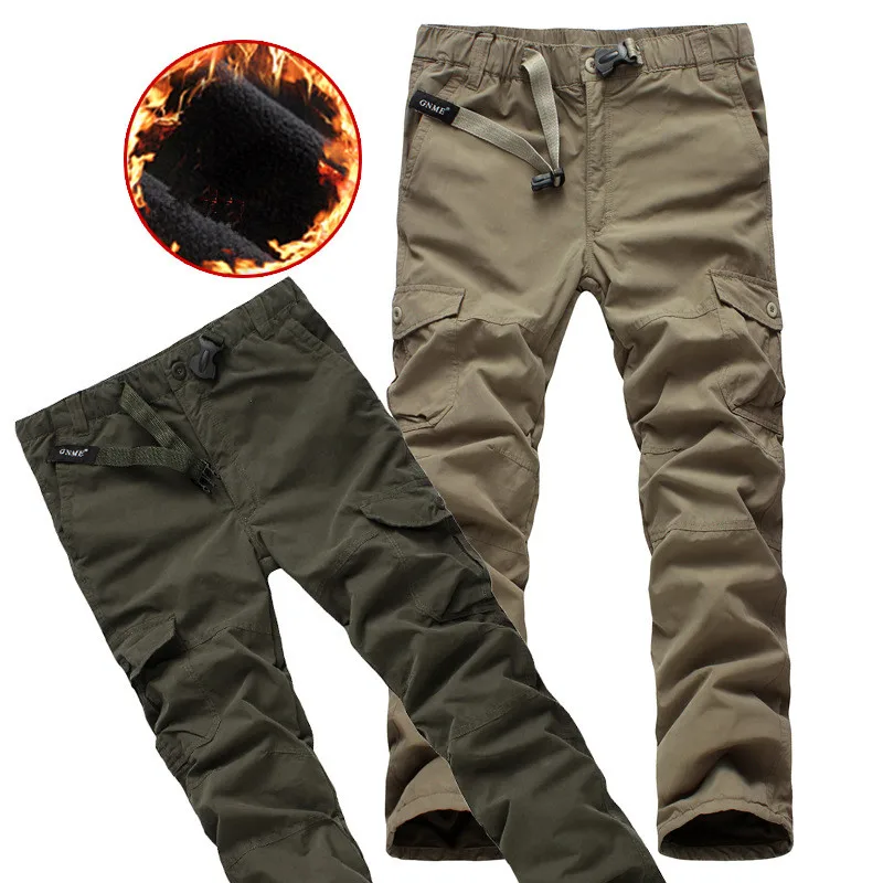 Мужские зимние брюки-карго с флисовой подкладкой, утепленные мешковатые брюки, хлопковые двухслойные брюки, тактические армейские брюки в стиле милитари