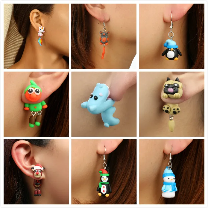 3D ручная работа серьги-гвоздики с животными для женщин из полимерн...