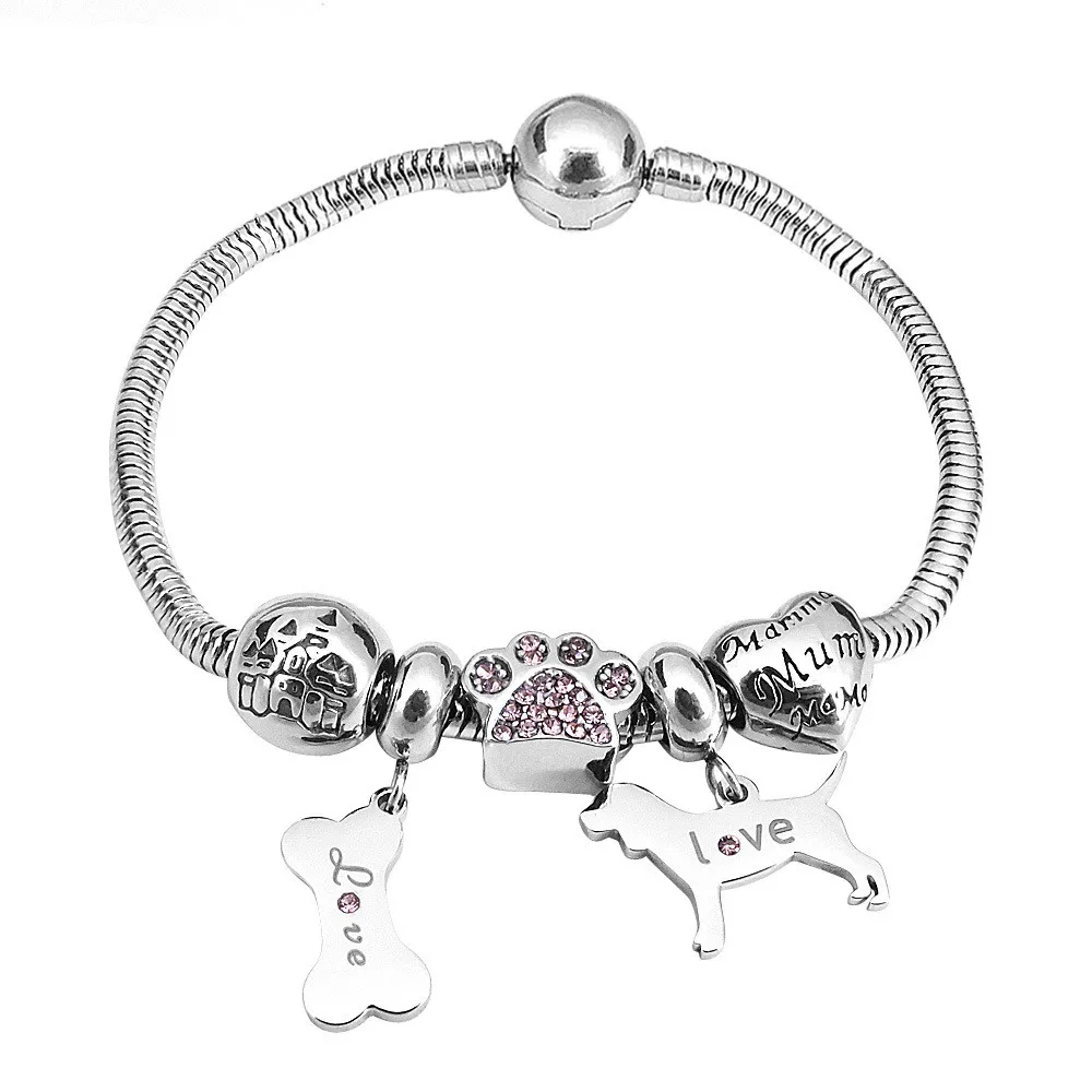 HMSFELY, бусины-шармы из нержавеющей стали 316L с кристаллами, бусины в виде собаки, для самостоятельного изготовления браслетов, ожерелий, ювелирных изделий, 4 шт.