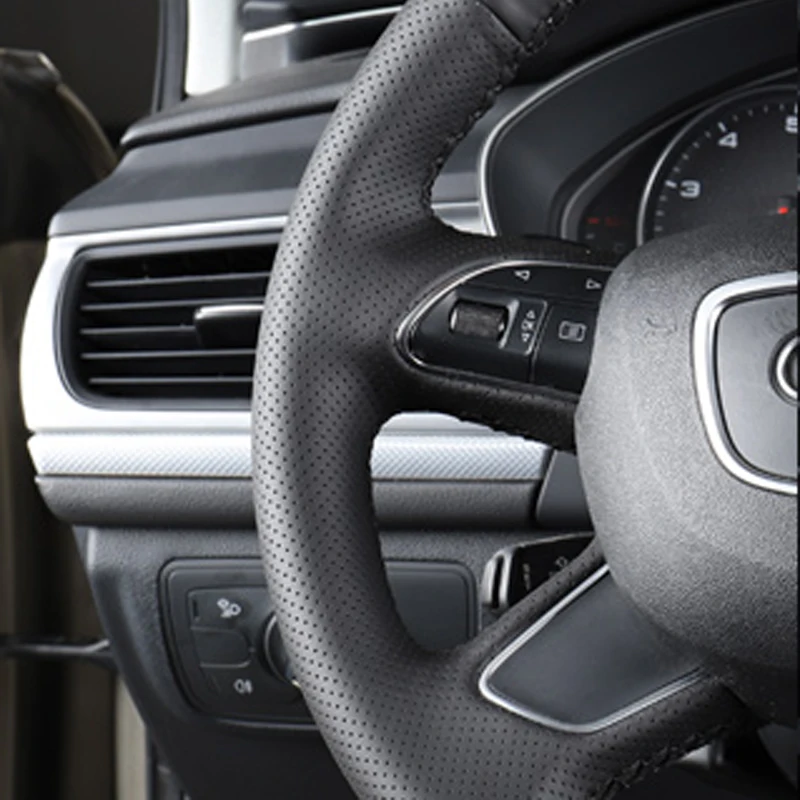 Рука сшитый черный искусственная кожа PU чехол рулевого колеса автомобиля для Audi A4 (B8) A6 (C7) A7 A8 A8 L Allroad Q5 2013-2017 Q7