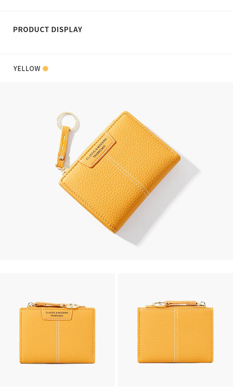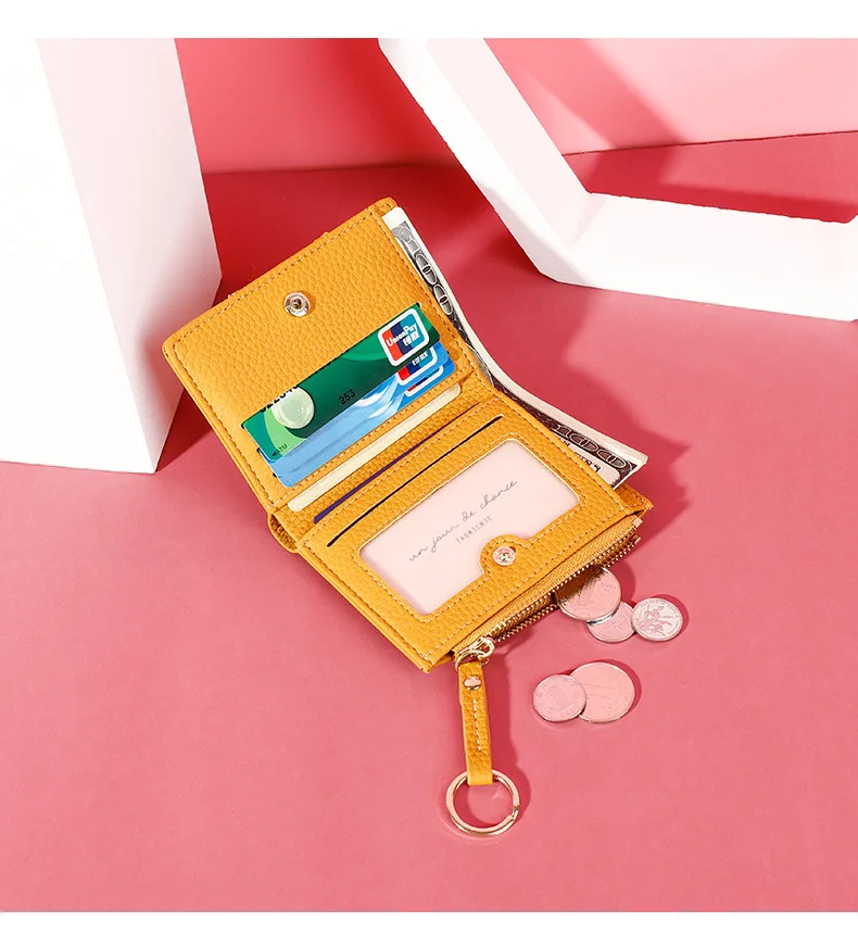 Брендовый желтый женский кошелек из мягкой искусственной кожи, Женский кошелек, мини-держатель для карт и монет, Короткие Кошельки, тонкий маленький кошелек, брелок на молнии