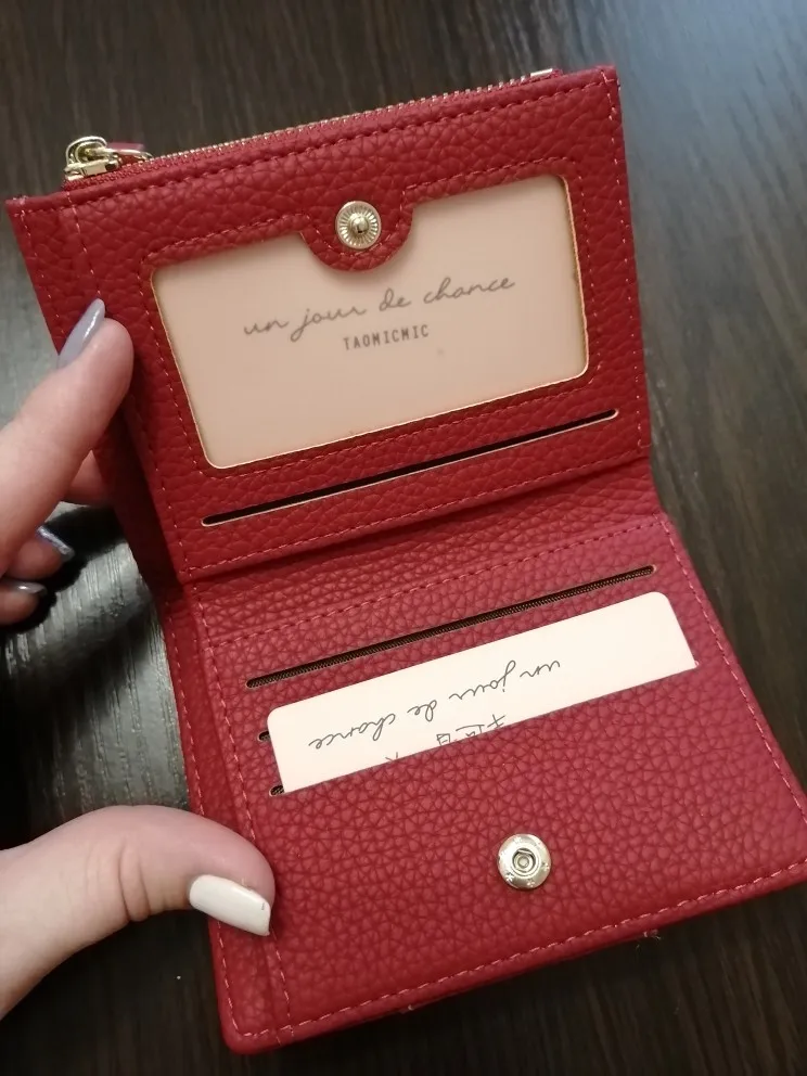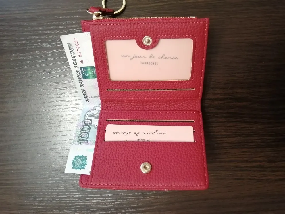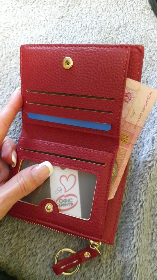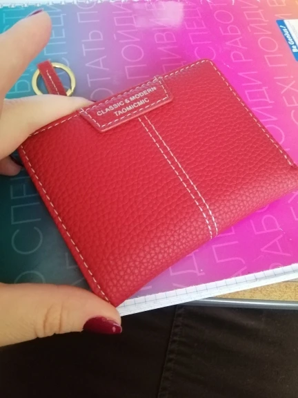 Очень симпатичный кошелёчек. Много отделений, маленький и компактный, вместительный. Приятный кожзам, выглядит достойно. Пришёл за 3 недели