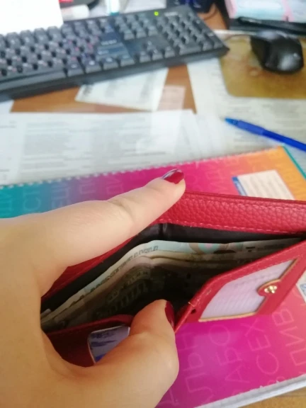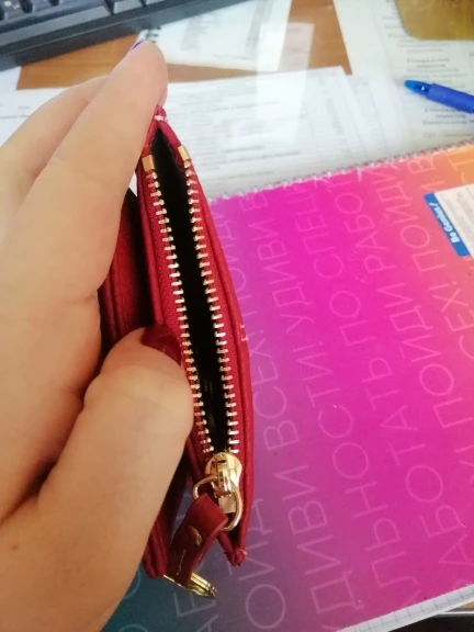 Получила свой кошелёк, маленький, аккуратный, приятный на ощупь. Я пользуюсь кошельком крайне редко, поэтому он для меня идеально подходит) Отделение под мелочь не очень удобное, но это дело привычки