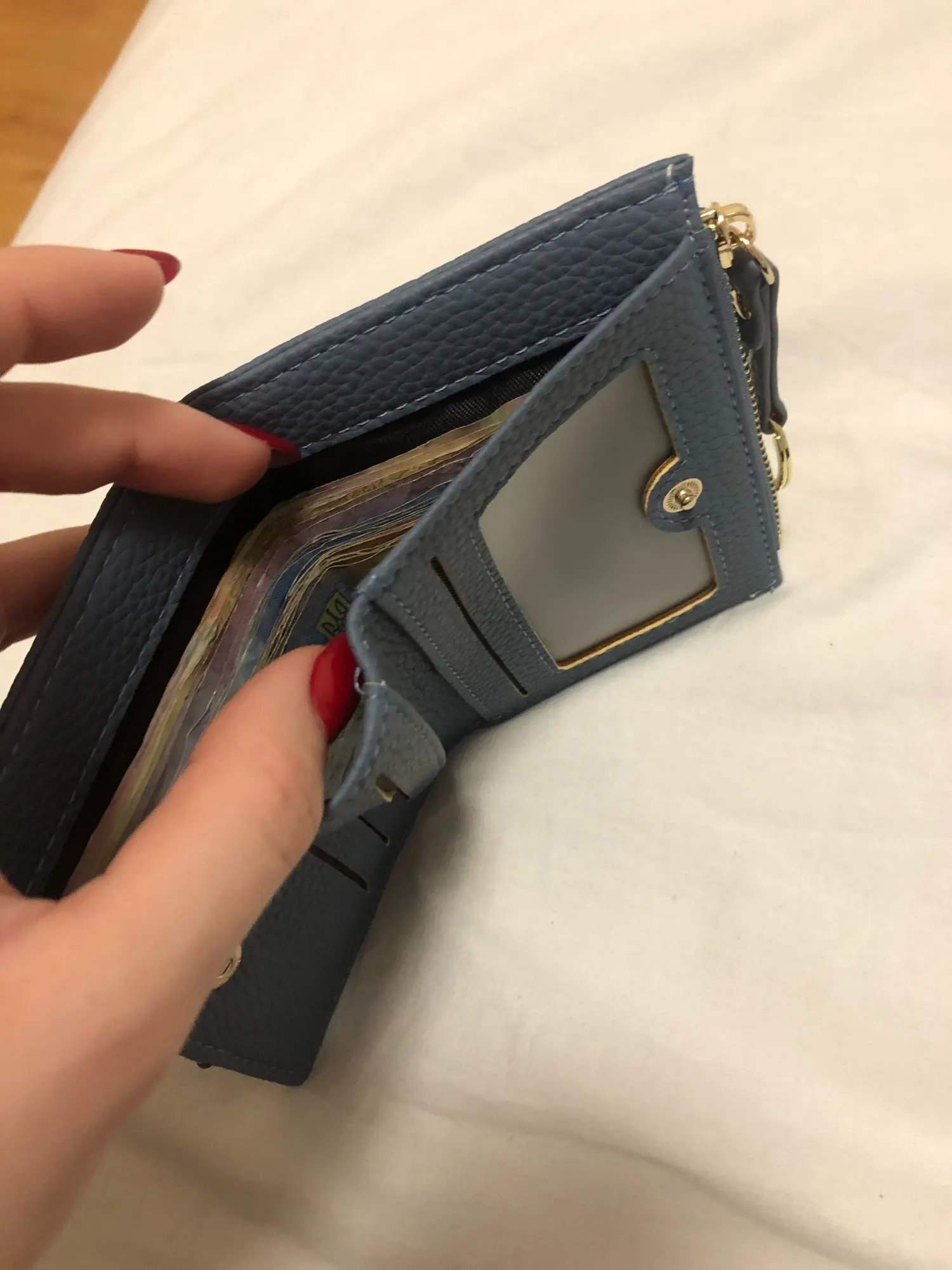 Доставка быстрая. Кошелек понравился. Мягкий и приятный на ощупь. Деньги, карты, мелочь - все вмещается.
