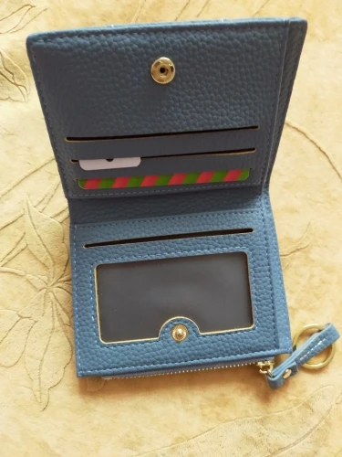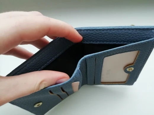 По первому впечатлению, за свою цену, нормальный кошелёк) в жизни голубой, оказался темнее. Материал чувствуется что не дорогой, но прошито все ровно. Купюры вмещает, держится закрытым. В целом прикольный) в маленькую сумочку девушке то что надо)