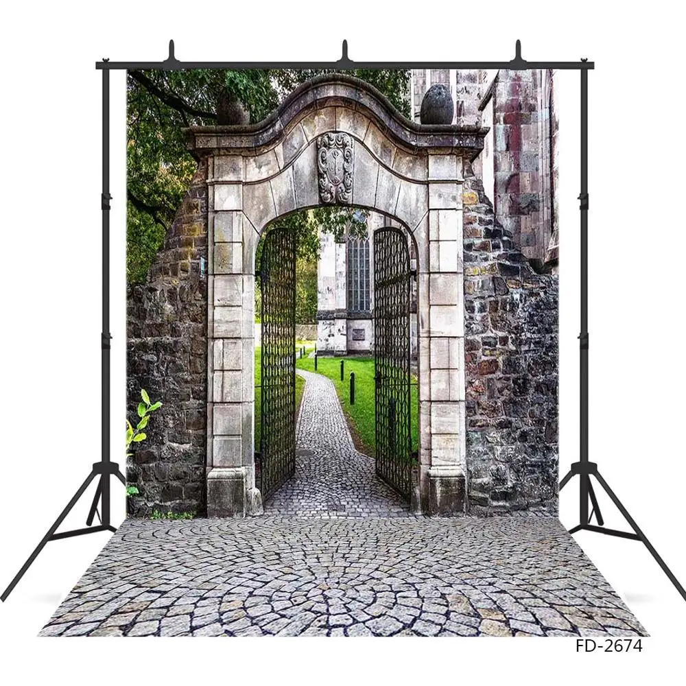 Vintage Brick Wall Floor Arch Alley Grass Photo Studio Backdrop