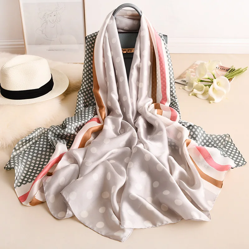 2020 модный натуральный шелковый шарф, Женская Большая бандана в горошек, фуляр, женские летние шали и шарфы из пашмины, Женская буфанда, новинка