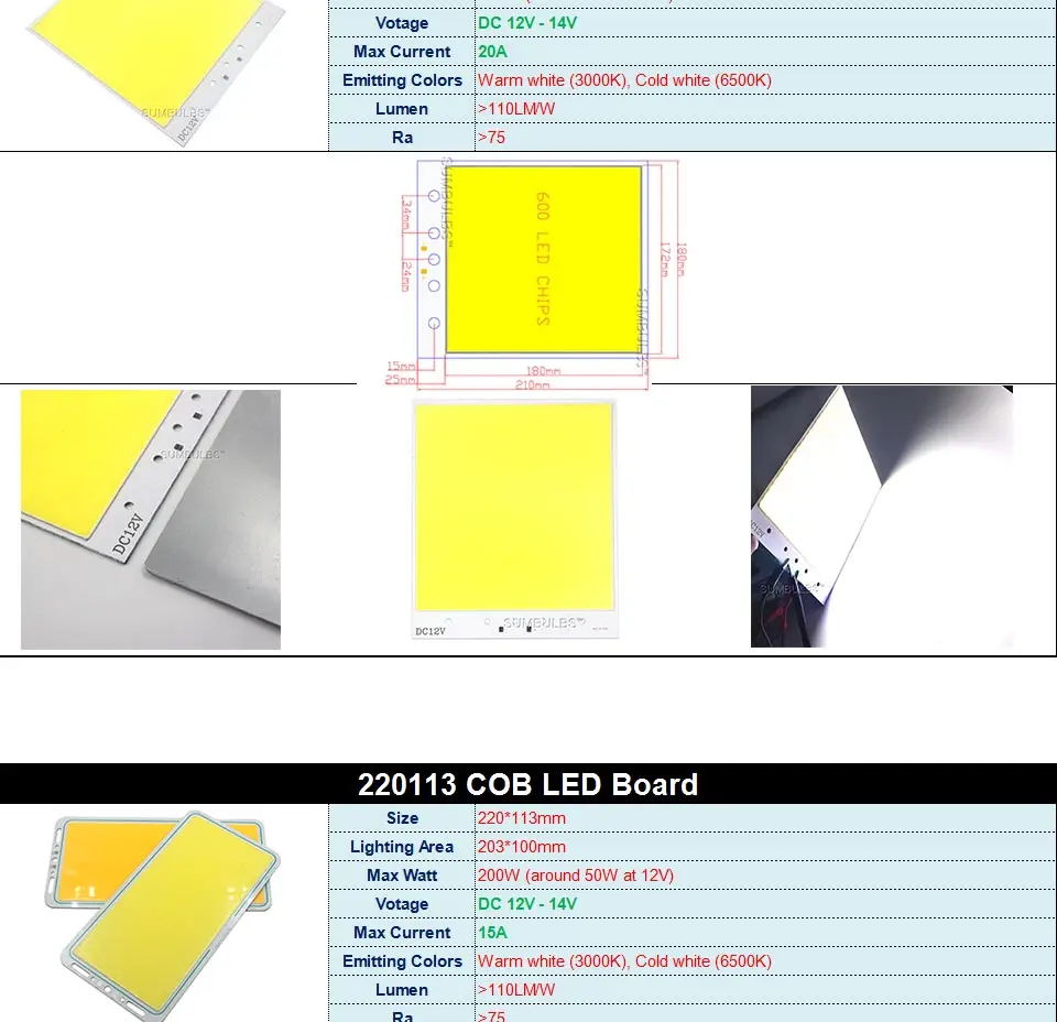 DC 12 В COB лампа светодиодный чип светильник 2 Вт-300 Вт модуль COB все размеры теплый естественный холодный белый красный зеленый синий цвет светодиодный ная лампа для DIY