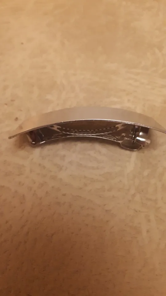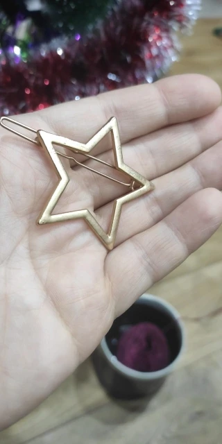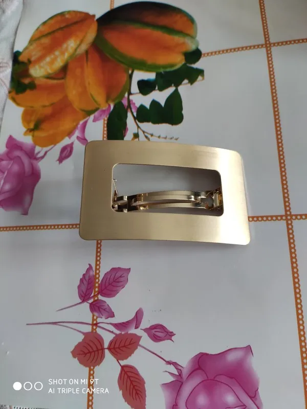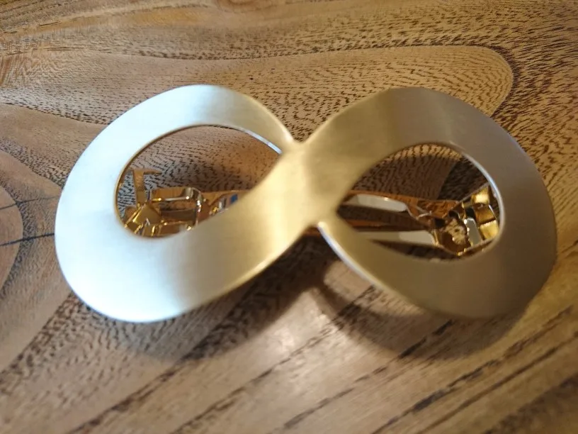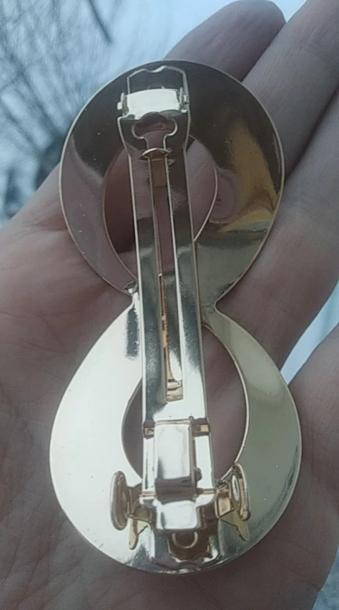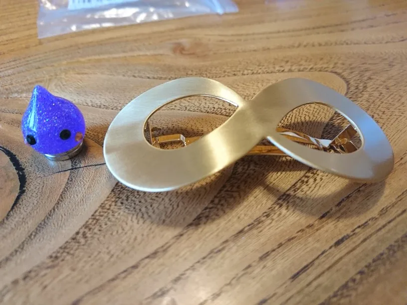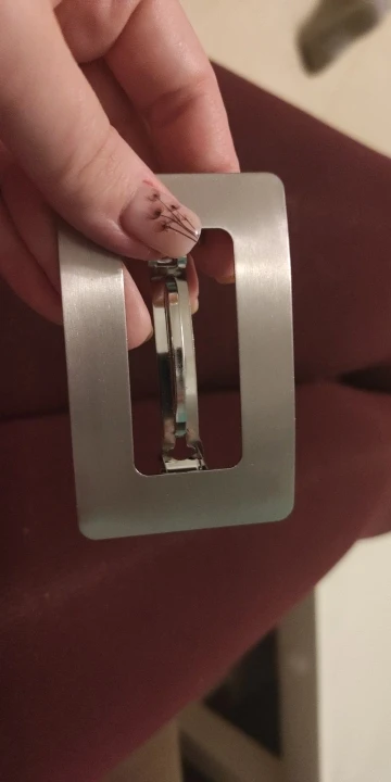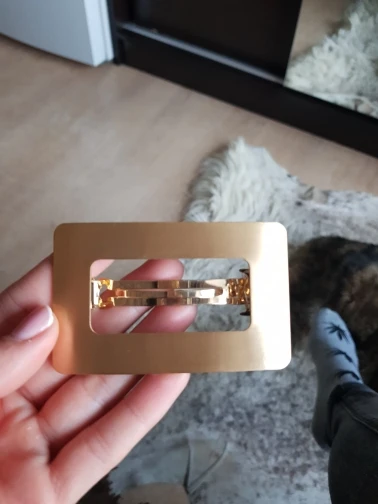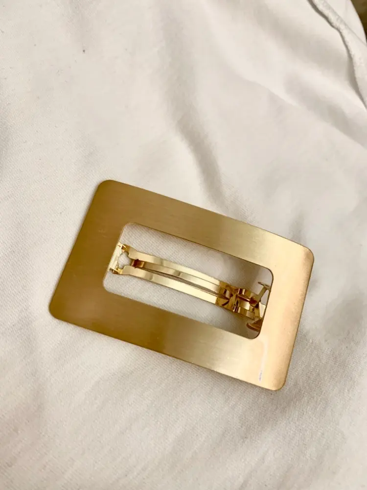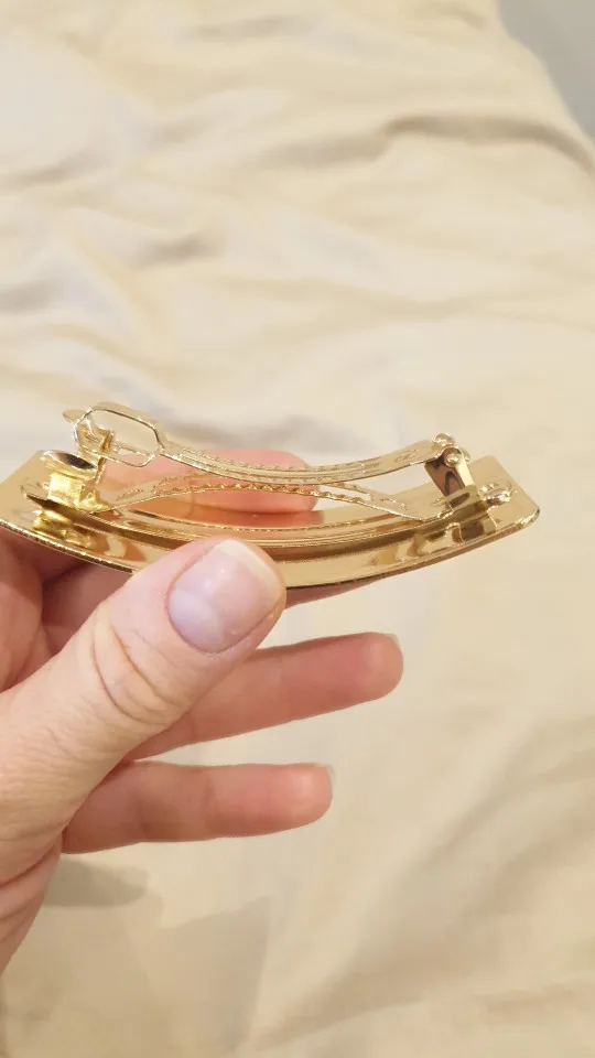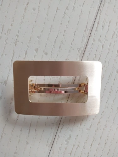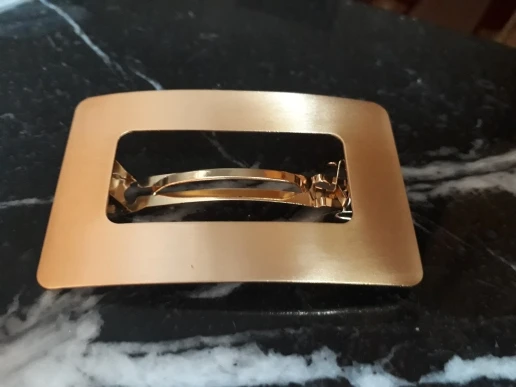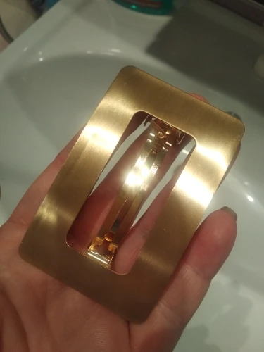 Невероятно стильная минималистичная заколка. Очень пронравилась. Довольно крупная и тяжелая. Если волосы негустые, то начинает сползать во время носки под своей тяжестью.