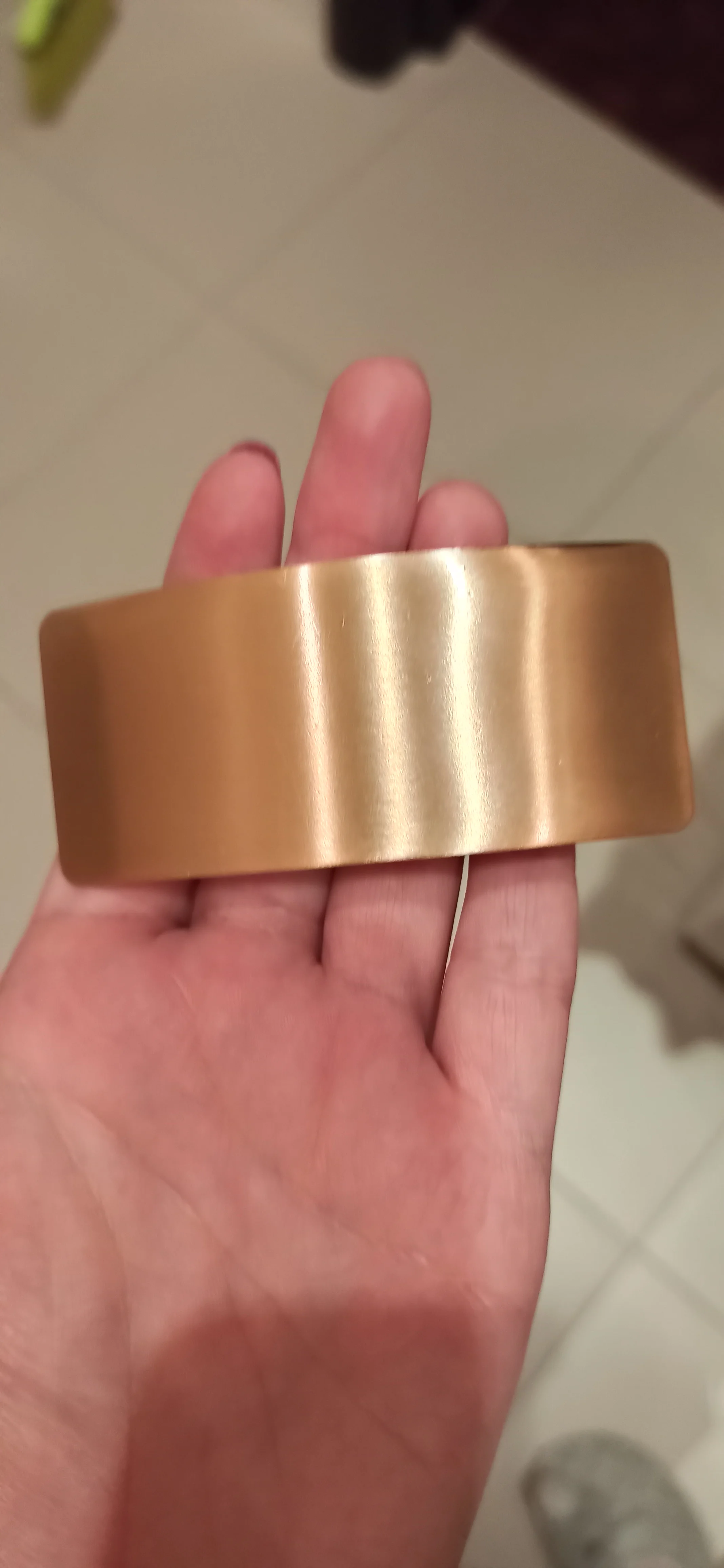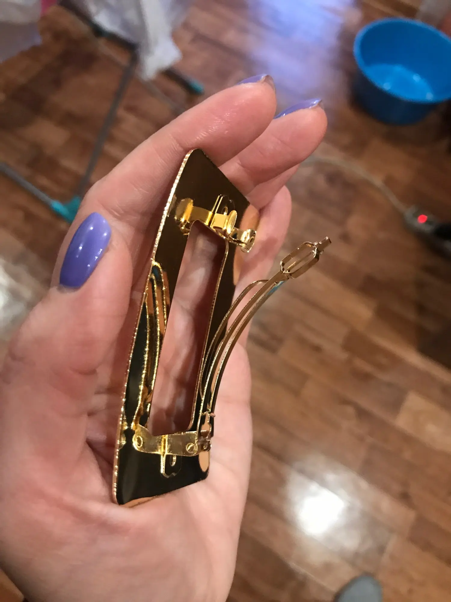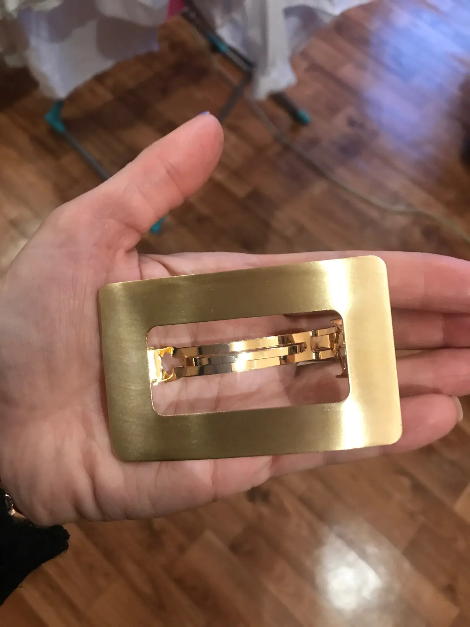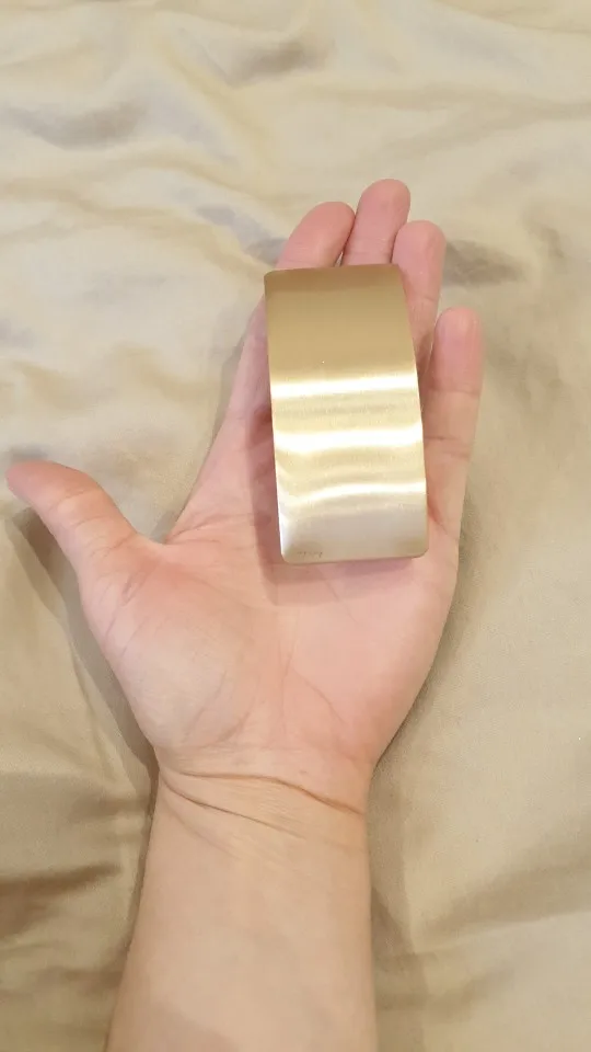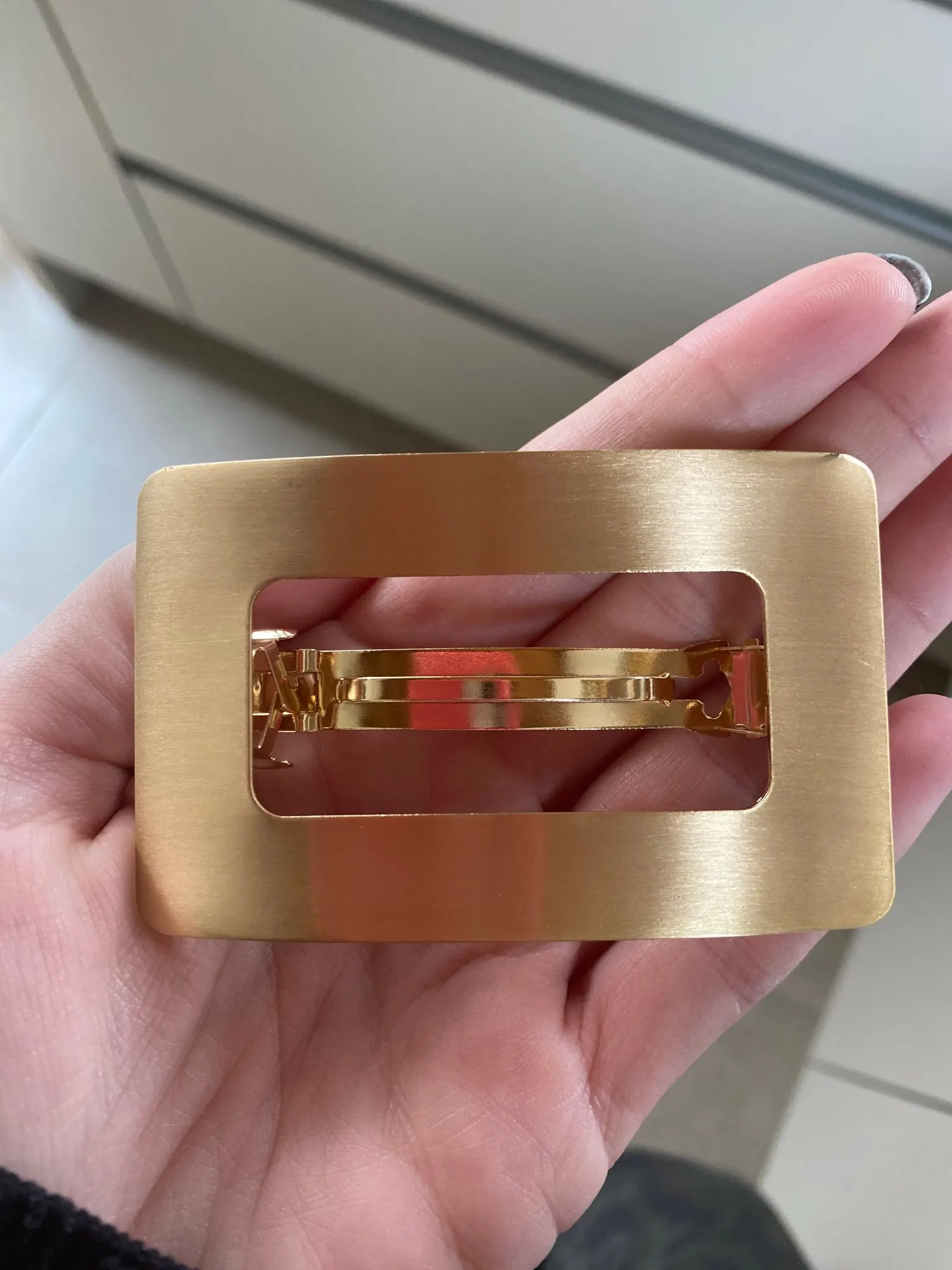 Невероятно стильная минималистичная заколка. Очень пронравилась. Довольно крупная и тяжелая. Если волосы негустые, то начинает сползать во время носки под своей тяжестью.